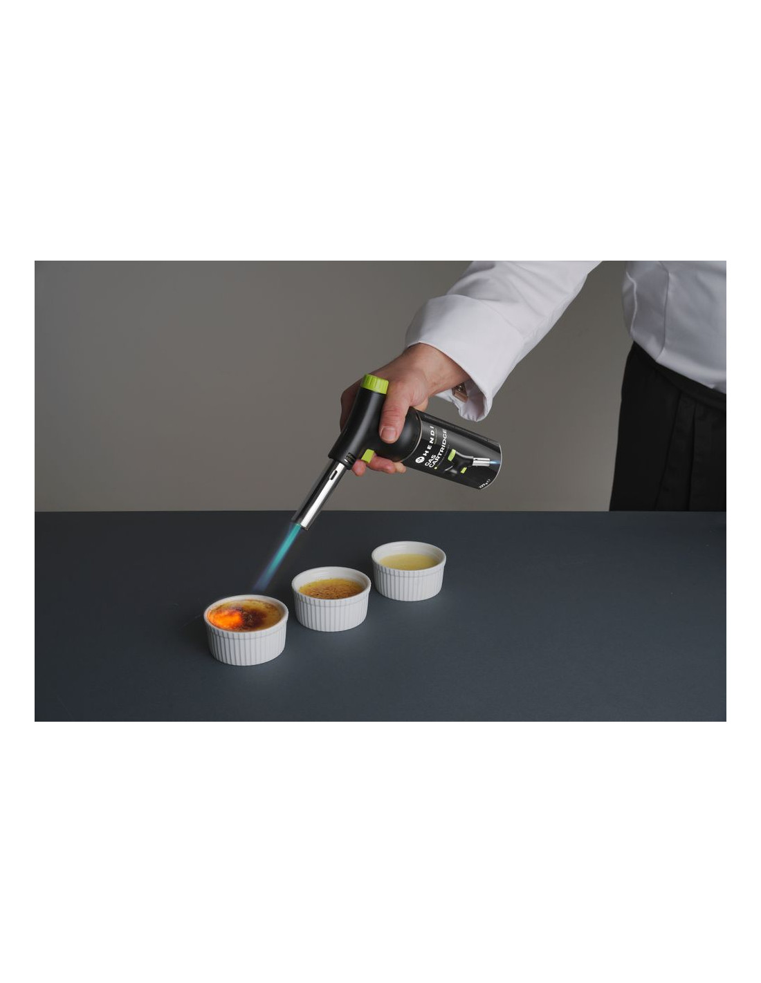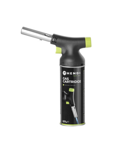 HENDI Jet kockbrännare – set med patron – designades av den välkände holländska designern Robert Bronwasser. Den ikoniska formen ligger bra i handen och munstyckets design säkerställer alltid jämna resultat. Lågans storlek kan regleras och brännaren fungerar i alla vinklar, även upp och ner, vilket hjälper till att uppnå perfekt bryntat socker, bräserat kött och grönsaker varje gång.
