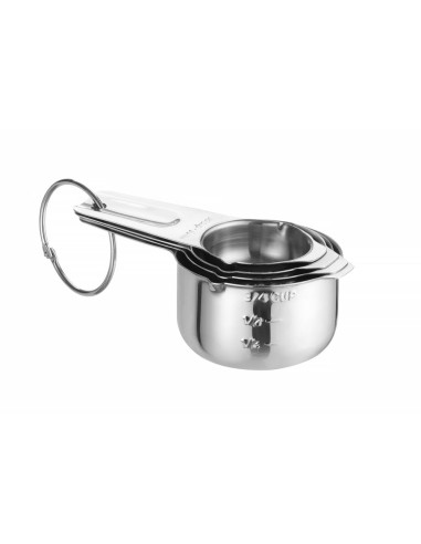 HENDI mätkoppar – ett set med 4 delar – hjälper dig att följa recept till punkt och pricka genom att alltid få rätt mängd ingredienser. Användningen av rostfritt stål gör dem perfekta för intensiv användning i professionella kök. Kopparna passar ihop för kompakt förvaring och har alla en ögla för upphängning.