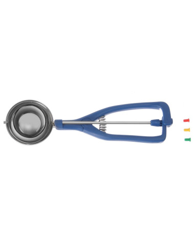 Glasfiberförstärkt nylonhandtag. Bättre identifiering av portionsstorlekar tack vare färgade markörer. Tillverkad av rostfritt stål.