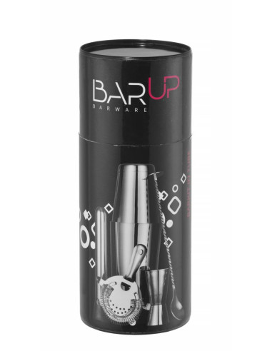BarUp Barkit i tub är en mycket genomtänkt och noggrant sammansatt uppsättning av grundläggande, professionella och viktiga verktyg för varje bartender. Förpackad i ett elegant kartongtub är det också en utmärkt presentidé för alla entusiaster av bartenderkonsten.