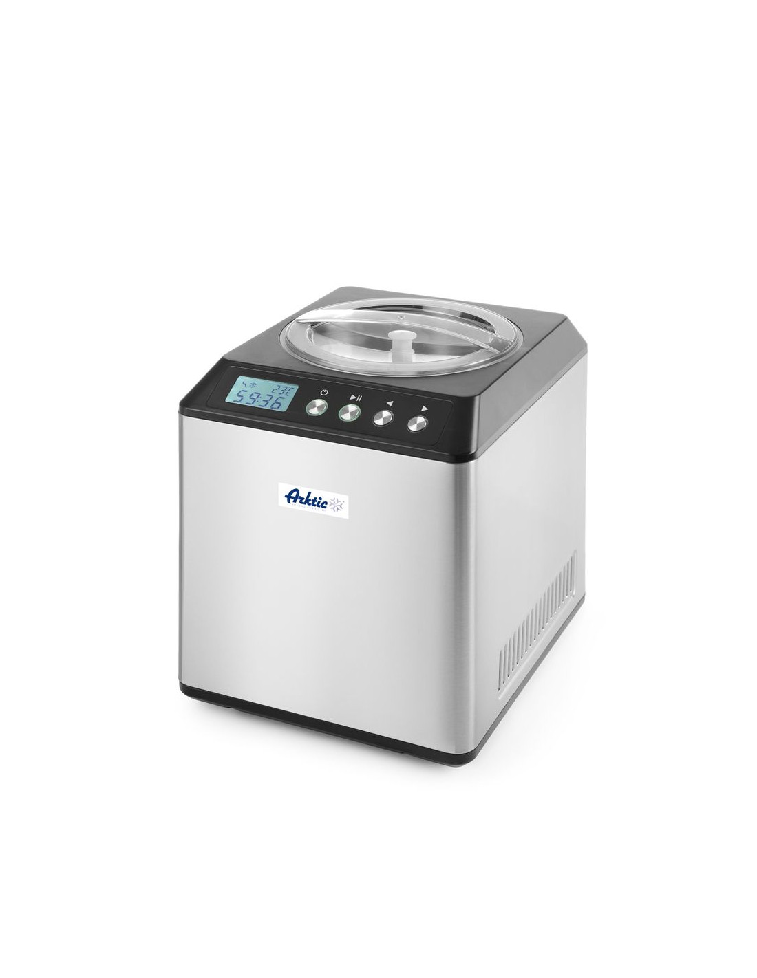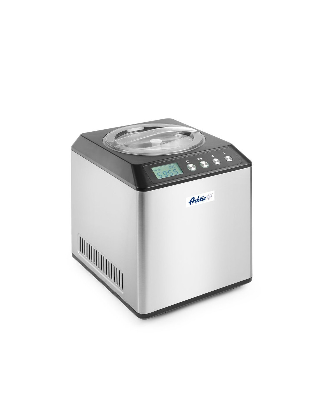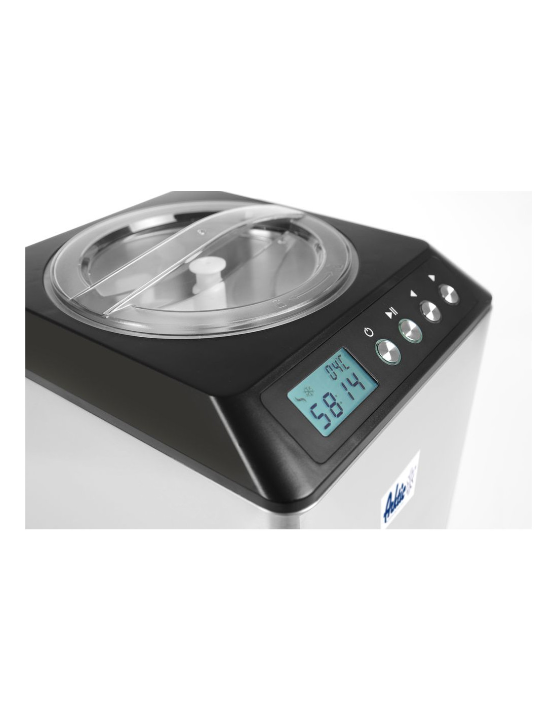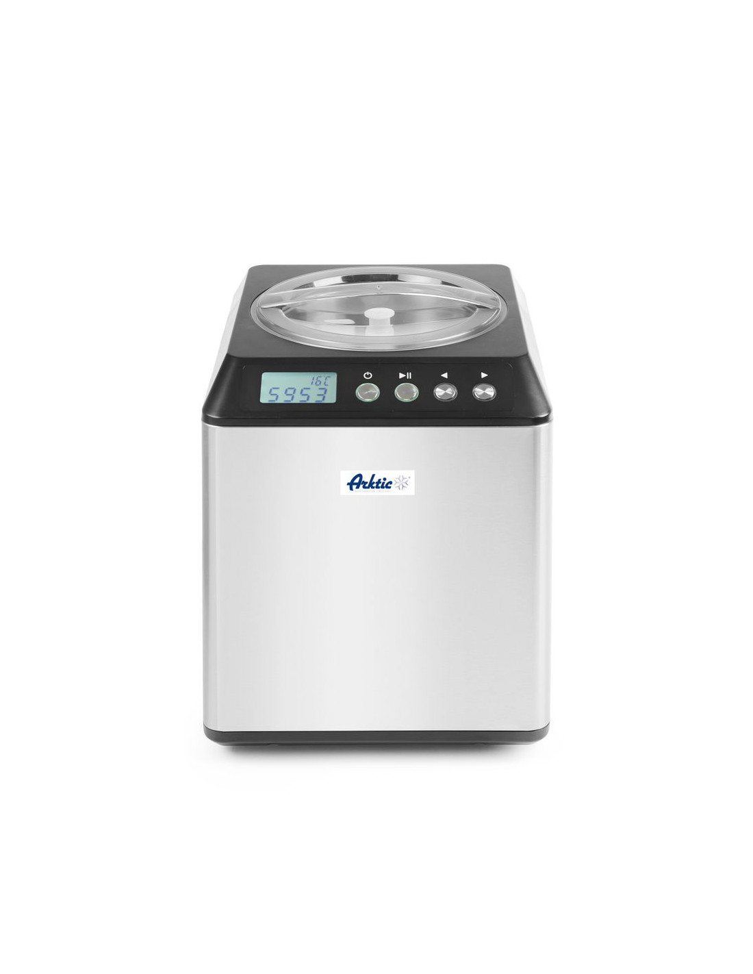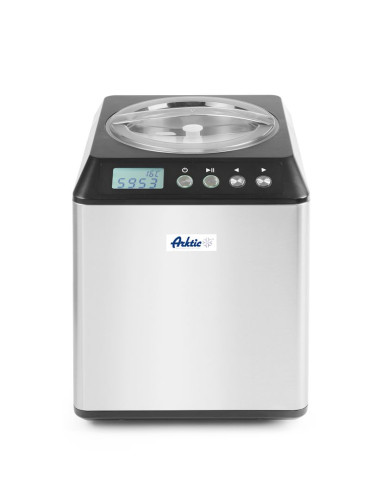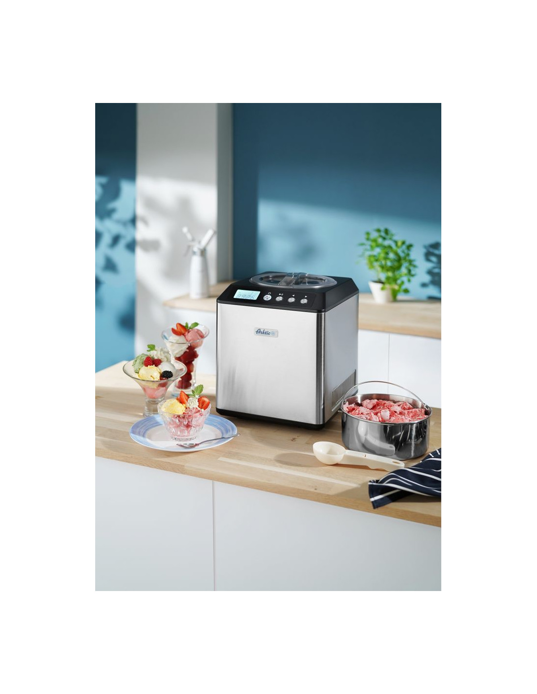Perfekt för att göra glass, sorbet och fryst yoghurt på upp till 90 minuter. 2-liters glassbehållare i rostfritt stål. Luftkyld kompressor med temperaturområde: -10 °C till -35 °C. Med 2 timmars kylförlängningsfunktion för att bibehålla isens konsistens efter att den är klar. Föregående kylning av ingredienserna är inte nödvändig. Stor, bakgrundsbelyst digital display som visar arbetstid, frystemperatur och mixerns rörelse. Lättmonterad mixerpaddel i POM. Transparent polykarbonatlock med "Twist-Lock" säkert stängningssystem. Mätkopp och sked ingår. Köldmedium: R600a.