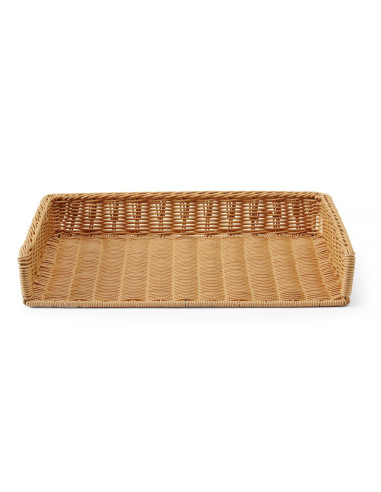 Stor korg – perfekt för att visa upp bröd och andra bakverk i bagerier, livsmedelsbutiker och bufféer. Tillverkad av polyrotting, förstärkt med en ram i rostfritt stål. Tål maskindisk.