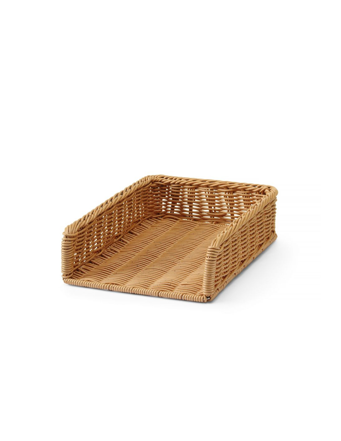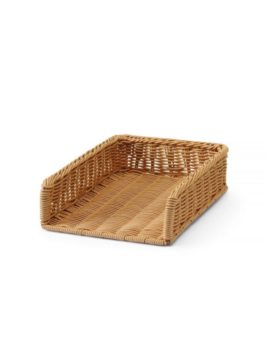 Stor korg – perfekt för att visa upp bröd och andra bakverk i bagerier, livsmedelsbutiker och bufféer. Tillverkad av polyrotting, förstärkt med en ram i rostfritt stål. Tål maskindisk.
