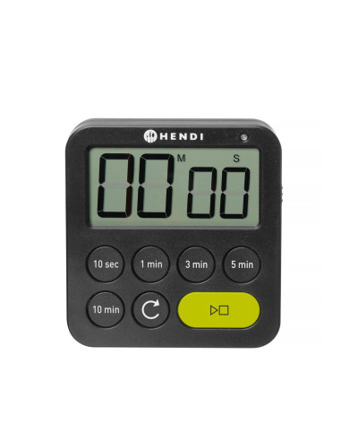 HENDI Timer är den perfekta kökskompanjonen för precision och bekvämlighet. Den har ett utfällbart stativ, upphängningshål och magnetisk baksida för enkel placering var du än behöver den. Med 3 larmlägen - tyst, medelstark och hög - och exakt 10 sekunders noggrannhet upp till 100 minuter är den perfekt för alla uppgifter.