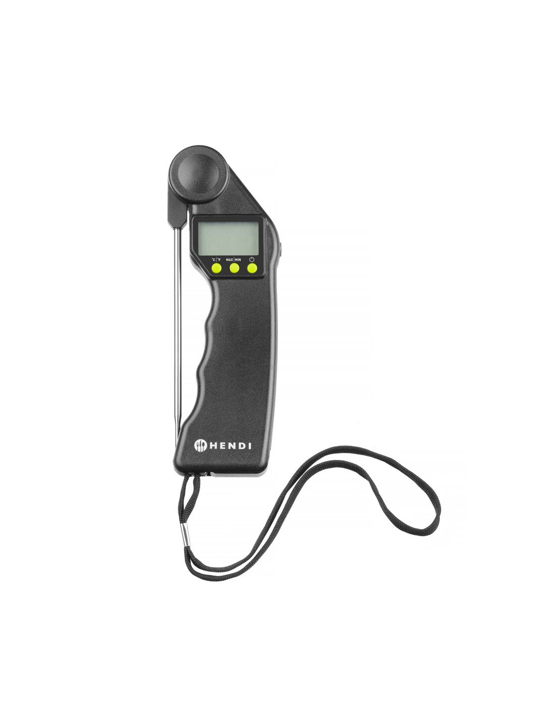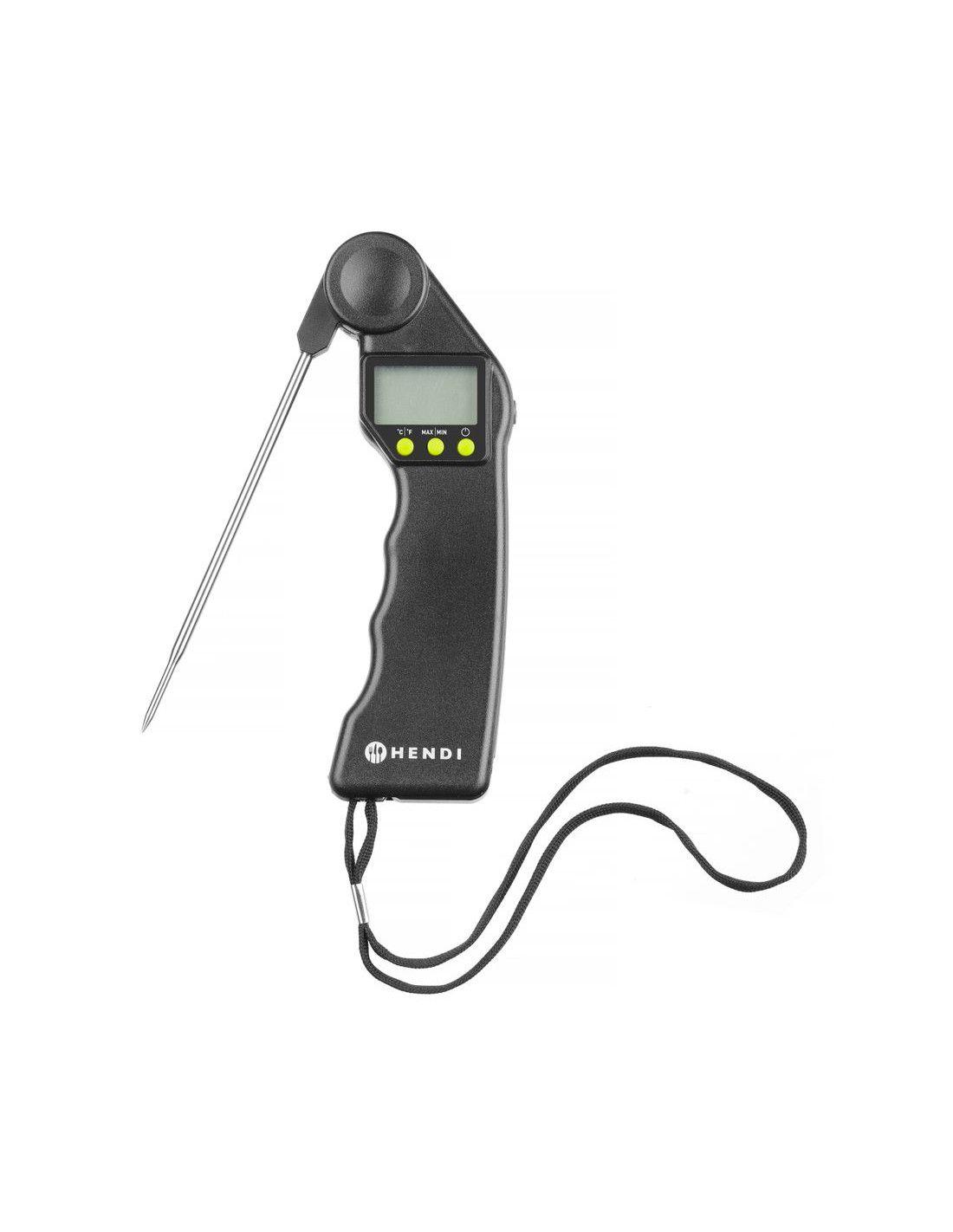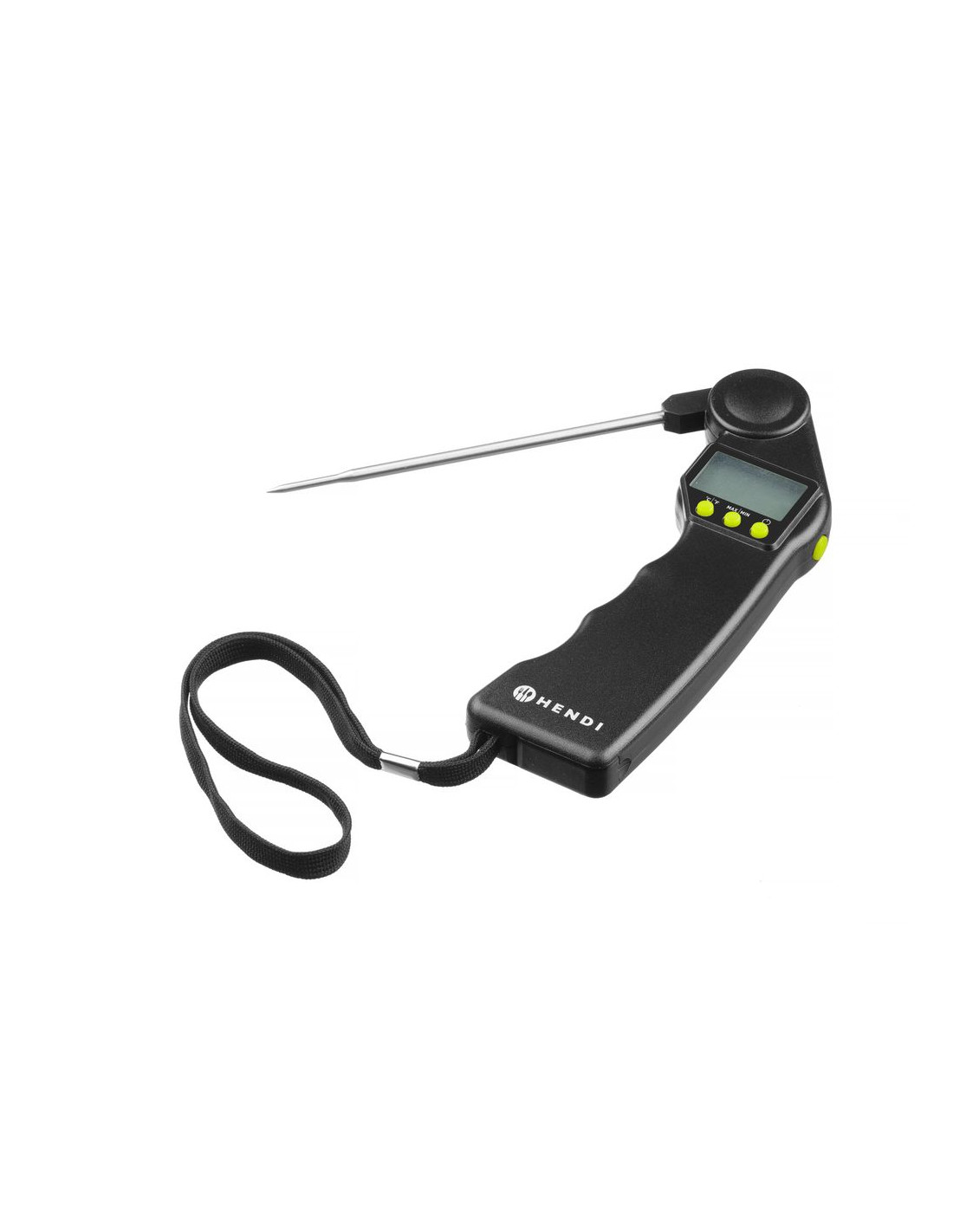 HENDI digitaltermometer med vikbar sond är tillverkad för att säkerställa att maten tillagas perfekt genom att mäta temperaturen inuti. Denna kökstermometer är designad för optimal hastighet och perfekt noggrannhet och erbjuder snabba och exakta avläsningar.