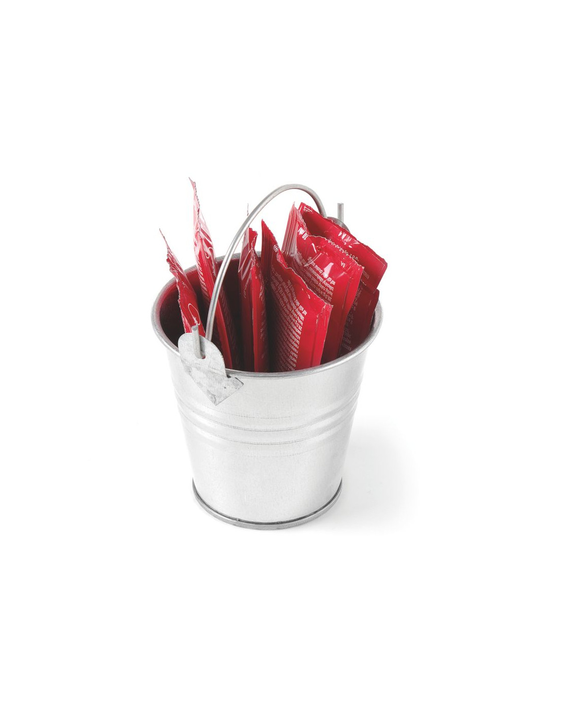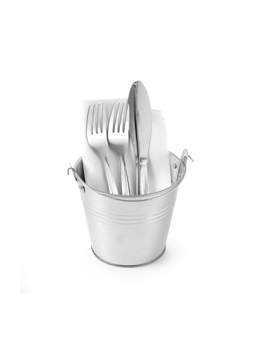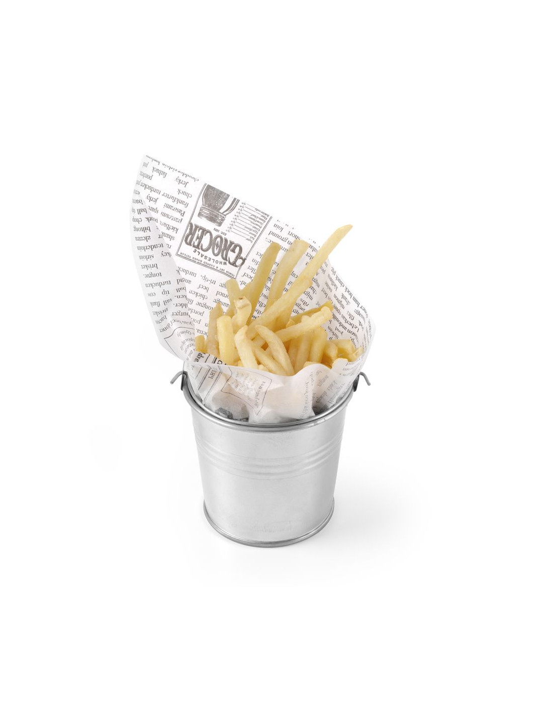 Tillverkad av galvaniserad stålplåt, vilket skapar ett rustikt utseende. Galvaniserat stål är inte avsett för kontakt med livsmedel, klä hinkarna med våra bakplåtspappersark när du använder dem för servering av mat.