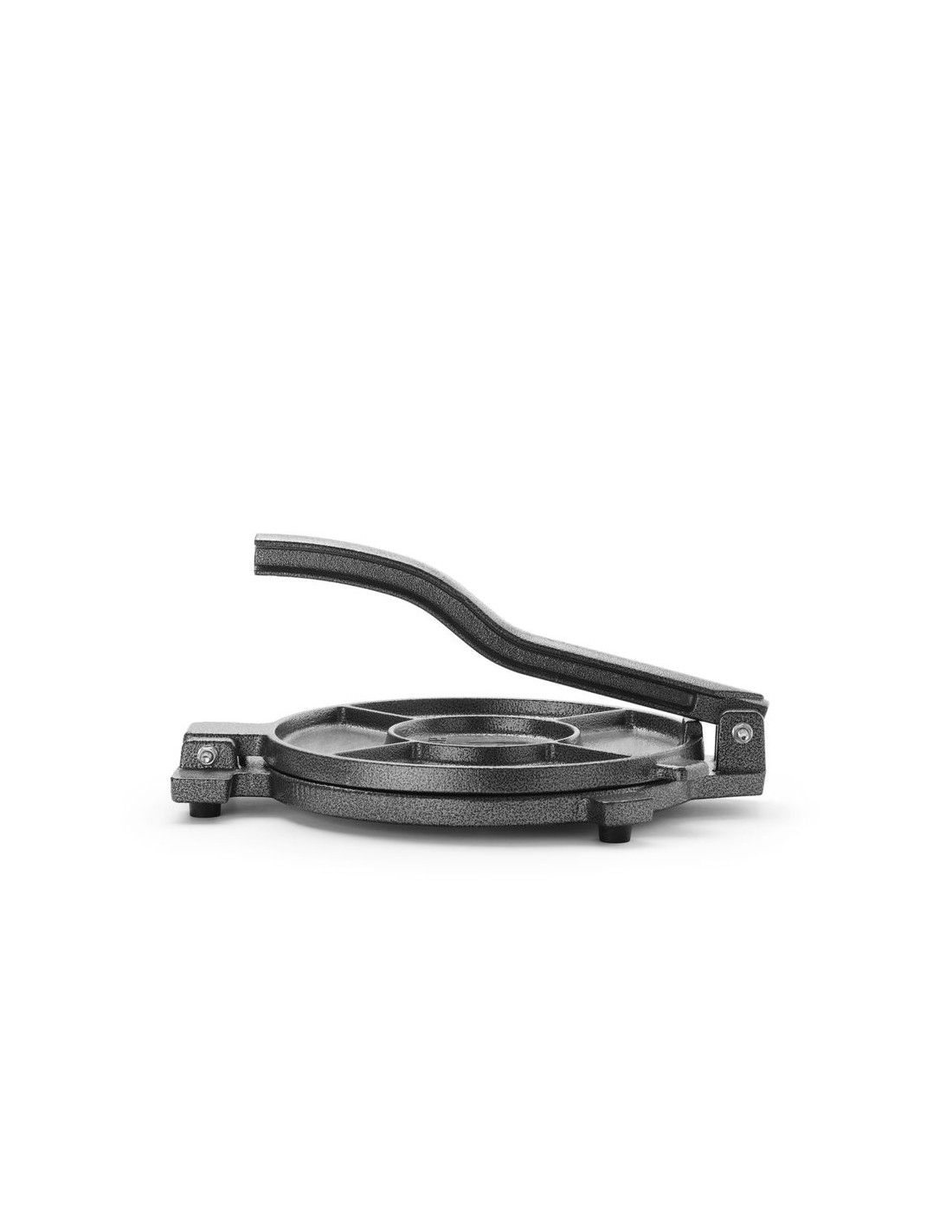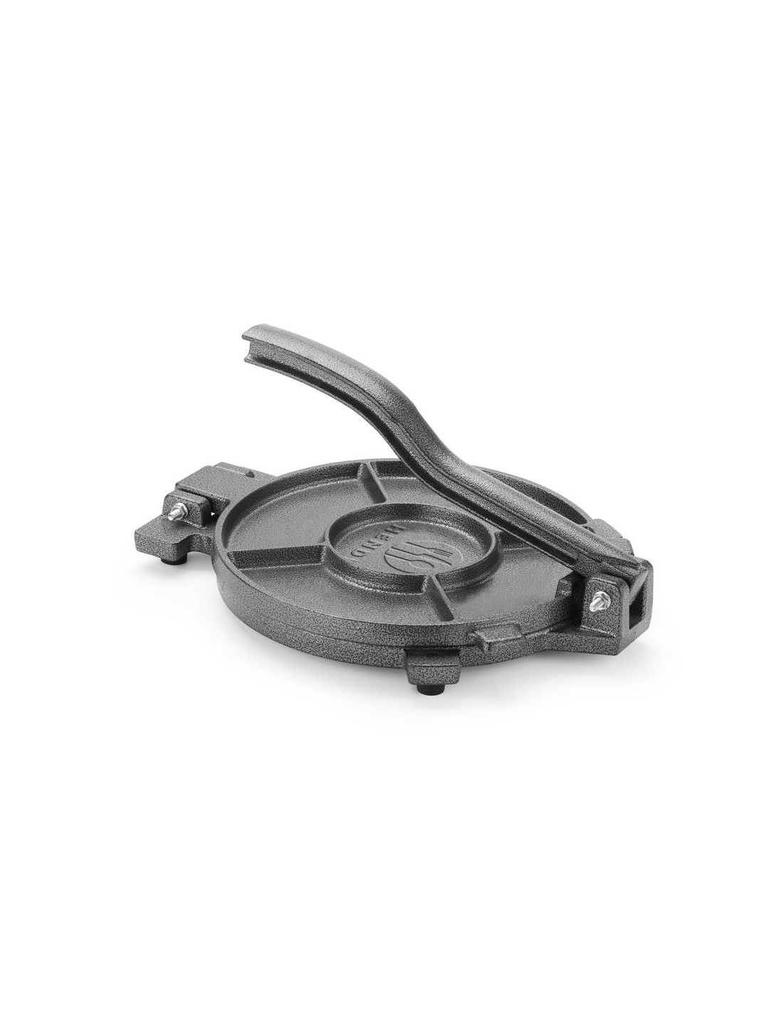 Tillverkad av gjutjärn. Behandlad med epoxipulverlackering. För tortillas upp till 260 mm i diameter. Med gummifötter för extra stabilitet. Ej diskmaskinssäker.