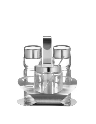3-delad - salt, peppar, senap. Med senapssked i rostfritt stål. Matt finish.