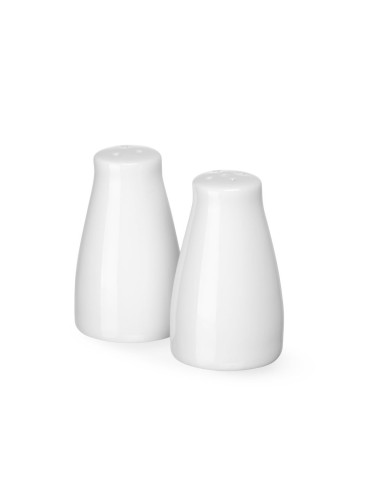 Tillverkad av porslin. 2-delat set bestående av en saltkar och en pepparkar.
