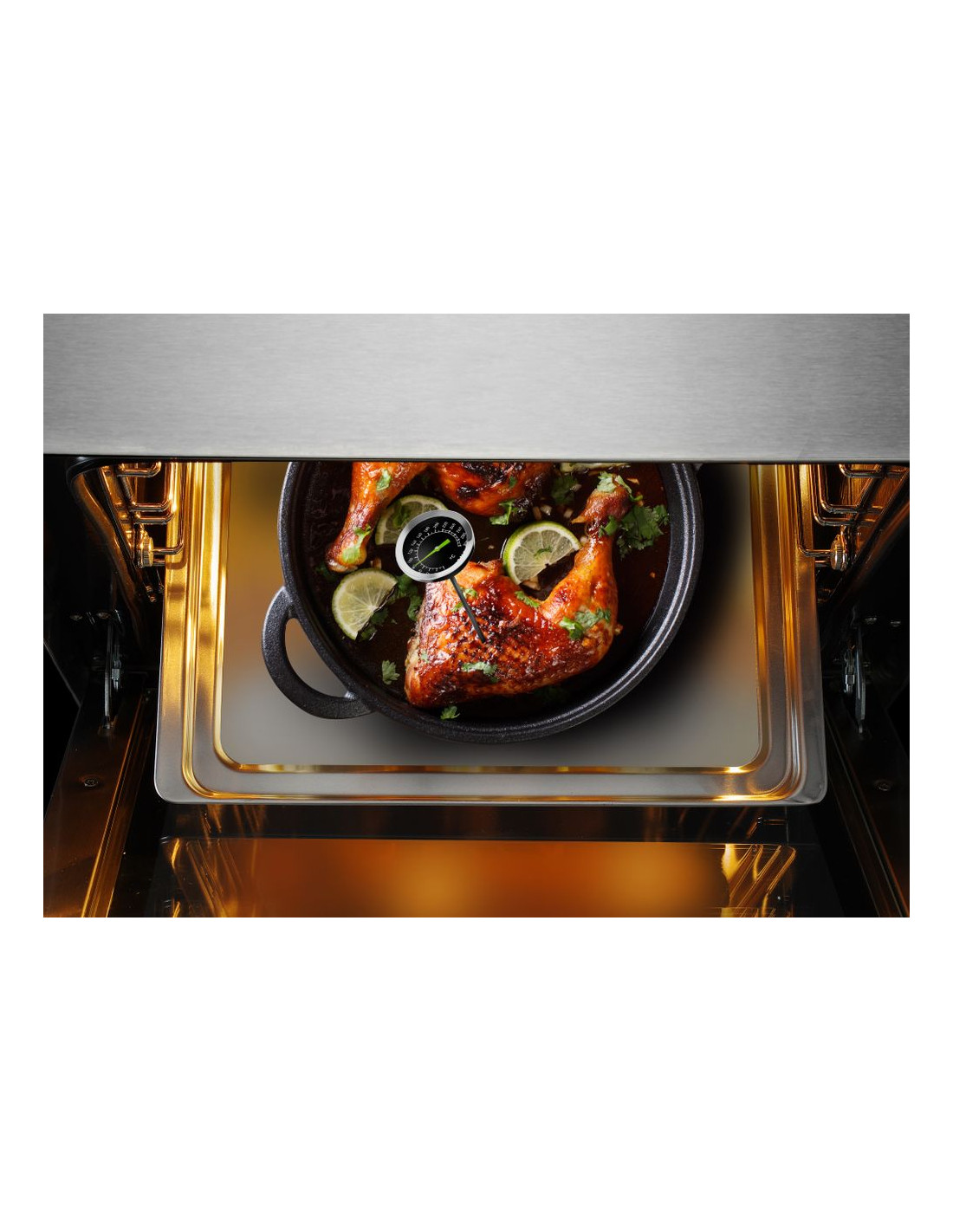 Prob tillverkad av 18/8 rostfritt stål, urtavlan är 18/8 och 126 mm lång. Analog display. Temperaturområde: 0 °C till 300 °C. Måttenhet: °C. Noggrannhet: ± 3 °C: 0 °C till 75 °C. ± 5 °C: 75 °C till 225 °C. ± 10 °C: 225 °C till 300 °C. Inkluderar ett lock med metallklämma.