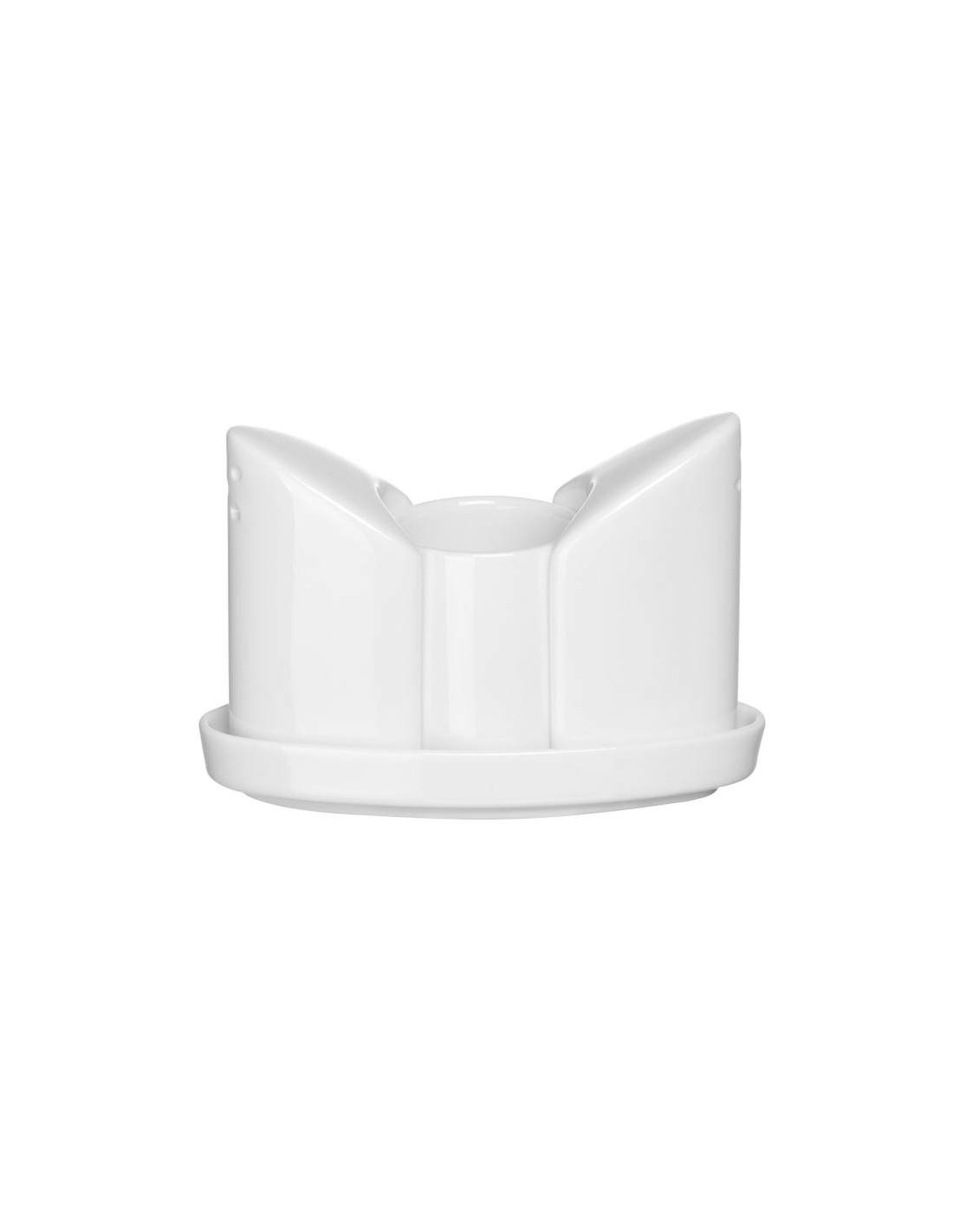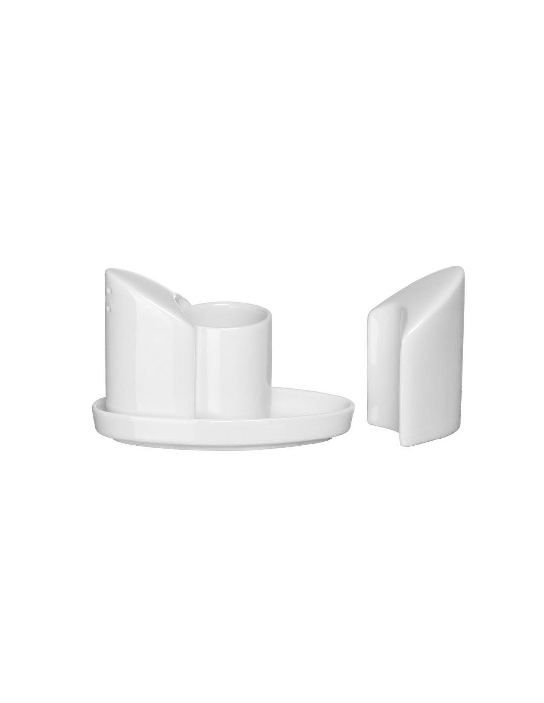 Tillverkad av porslin. Set med 4 delar bestående av saltkar, pepparkar, tandpetarhållare och bricka, allt tillverkat av porslin.