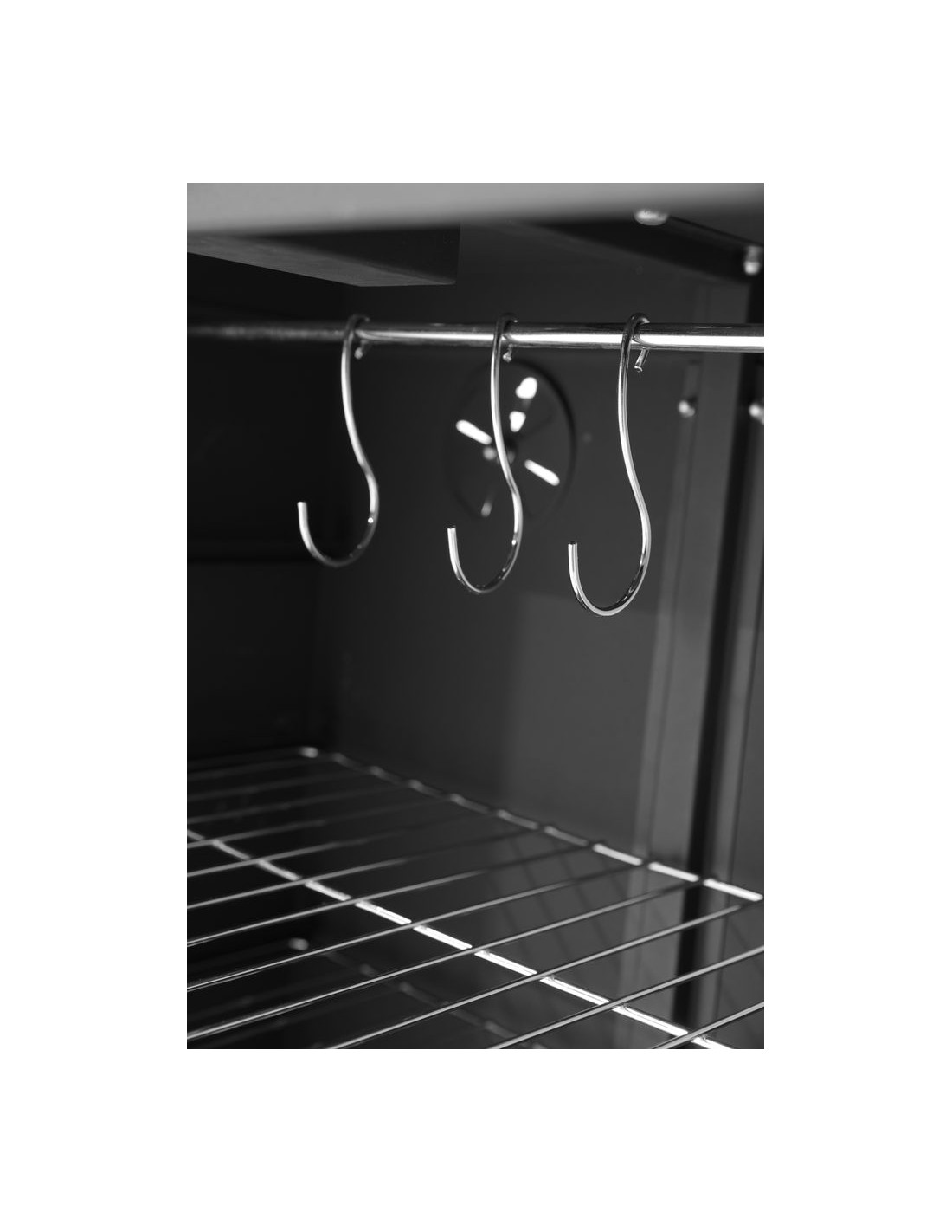 - Inkluderar flera galler och köttkrokar för flexibel rökkapacitet och produktvariation