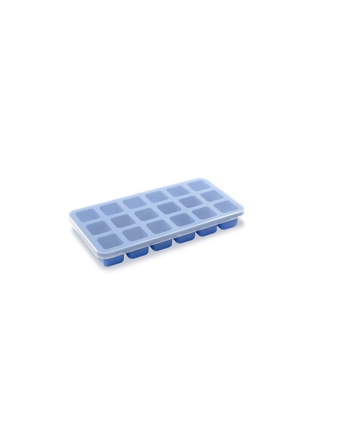 Tillverkad av silikon. Lock av polypropen. För att göra 18 små isbitar (≤ 2,6 x 2,6 x 2,6 cm).