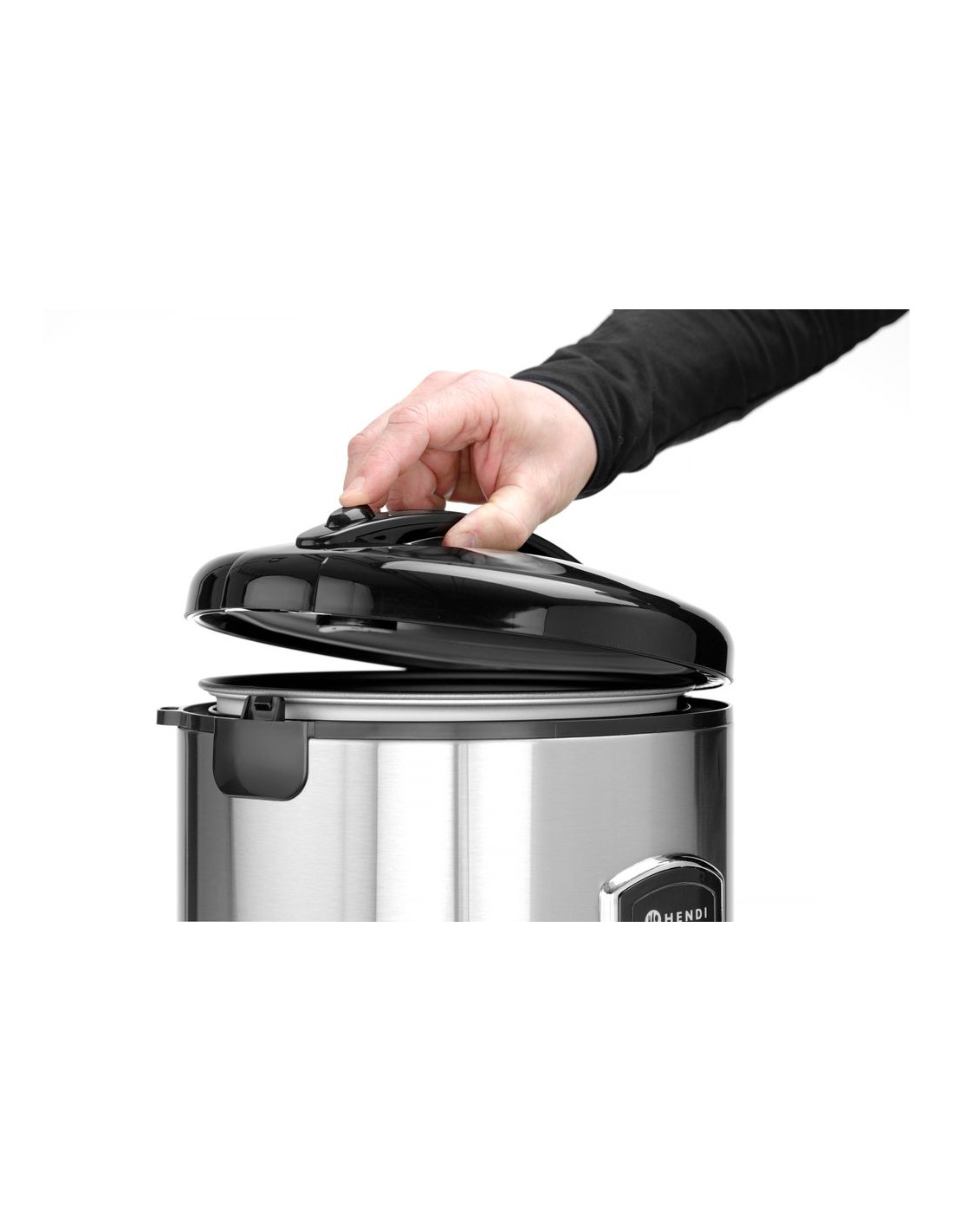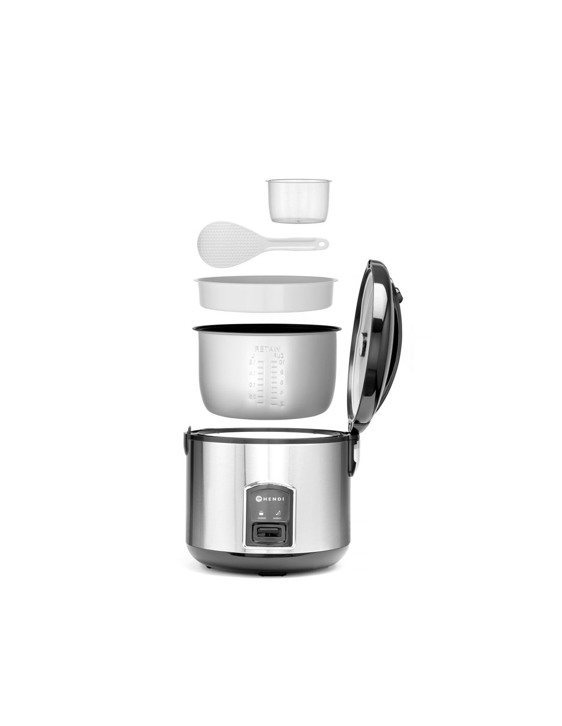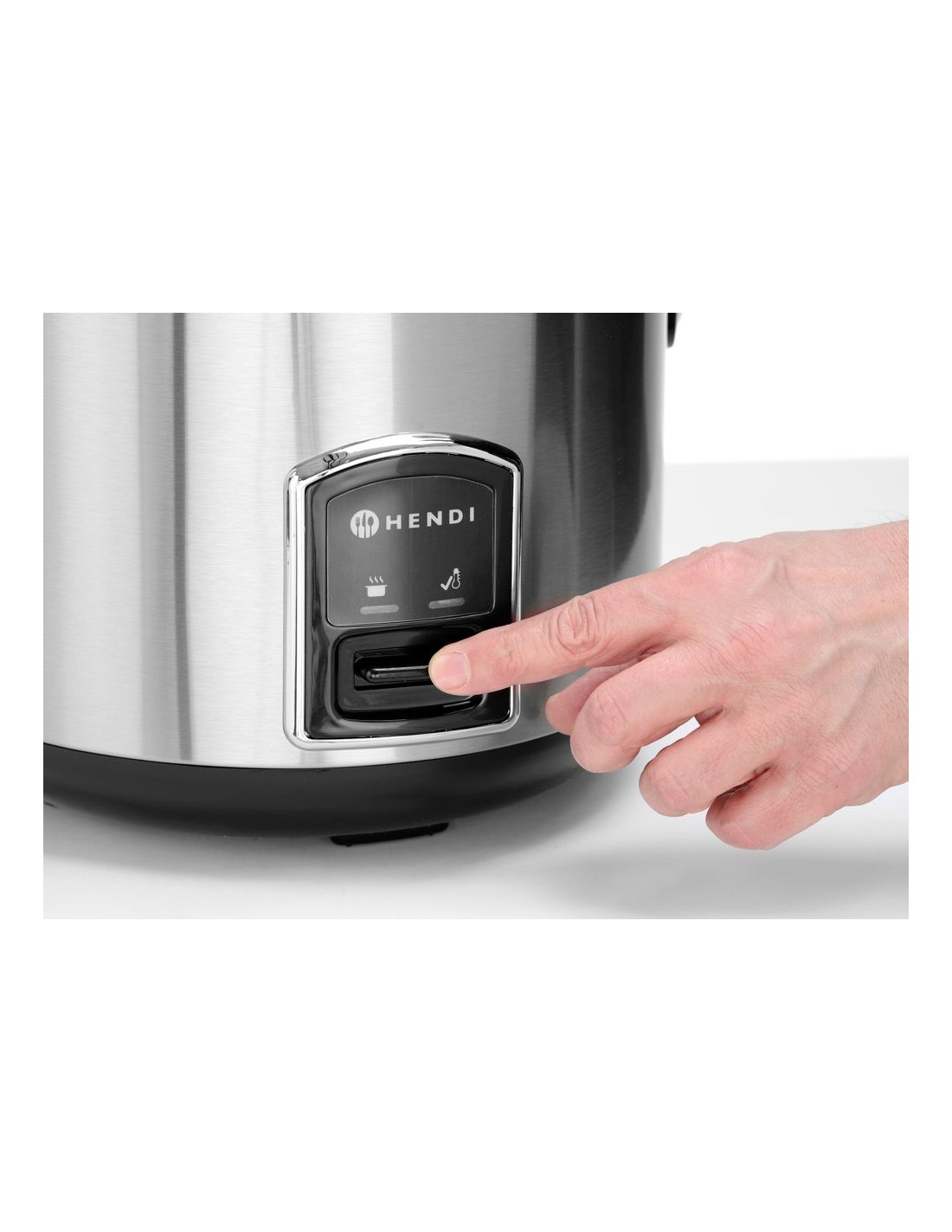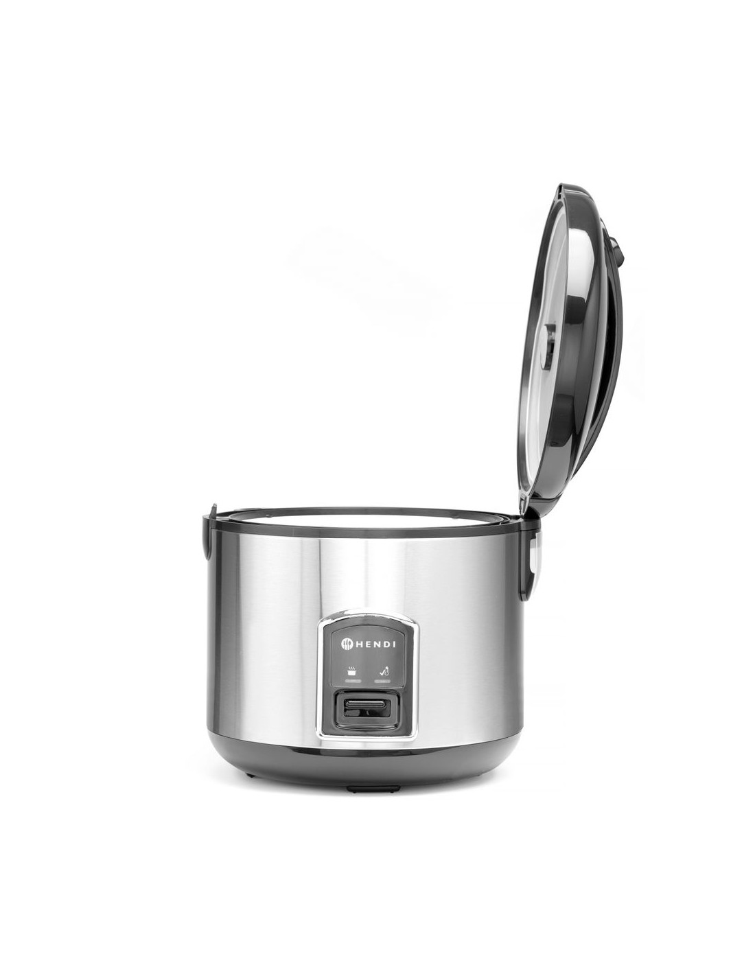 HENDI Profi Line riskokare med ångfunktion växlar automatiskt mellan varmhållningsläge efter att riset är kokt. Med ångkorgen kan den även tillaga grönsaker, skaldjur, ägg etc.