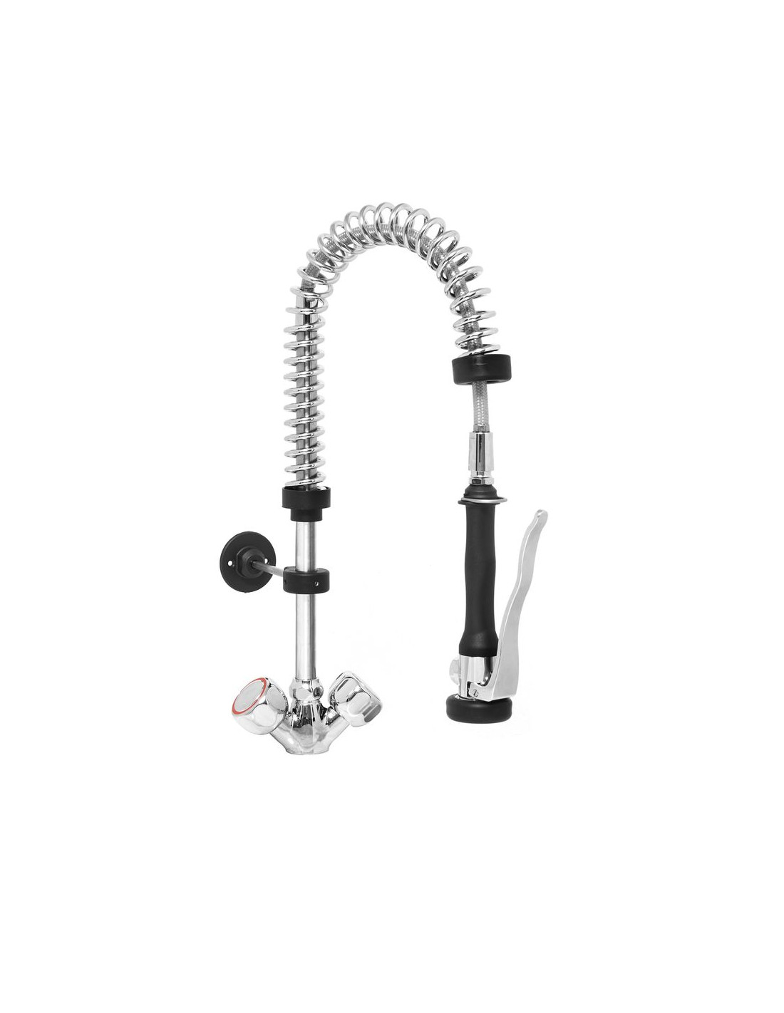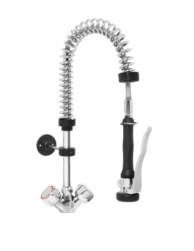 Enkel pelarblandare. Spolrör tål högt vattentryck. Maximalt vattenflöde: 17 l/min. vid ett tryck på 4 bar. Plasthandtag för spolrör. Justerbart pelarstöd. Väggfäste (valfri förkortning). Anslutningsslangar: 1/2 tum, 400 mm långa vardera. Bordshål som krävs: Ø 27 mm.