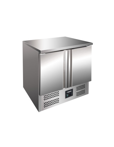 Material: (hölje och insida) rostfritt stål; (arbetsbänk) rostfritt stål