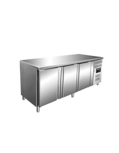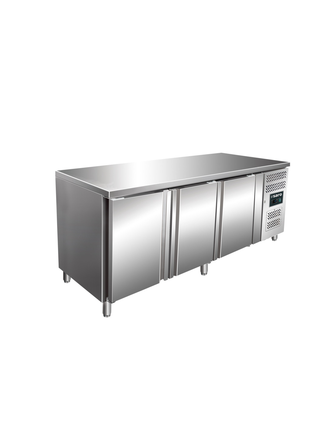 Material: (hölje och insida) rostfritt stål; (arbetsbänk) rostfritt stål
