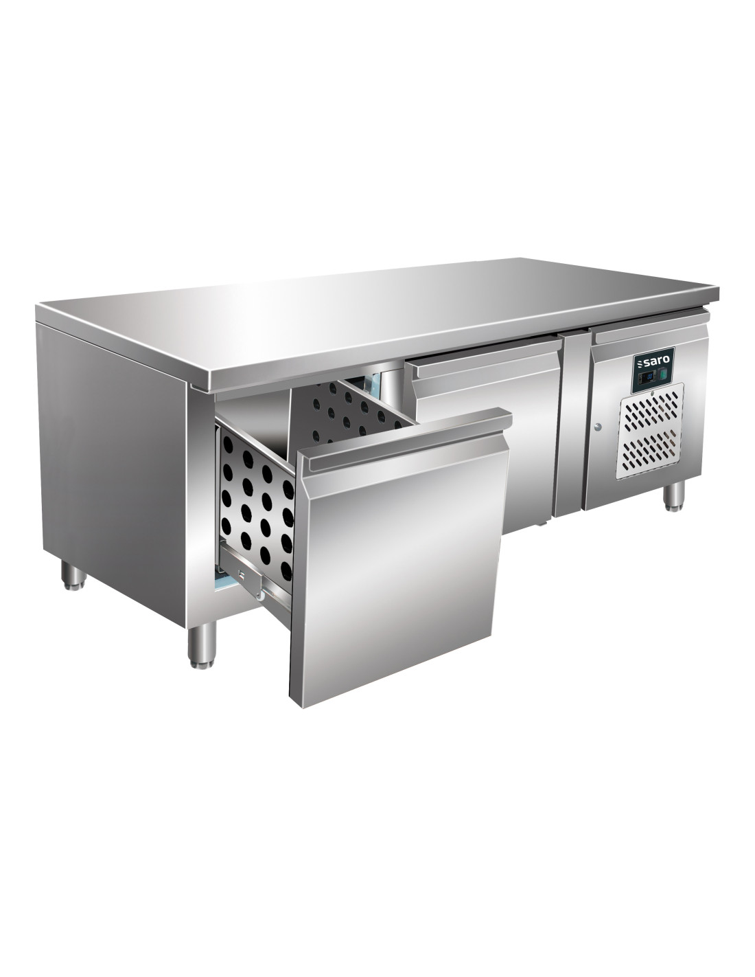 Material: (hölje och insida) rostfritt stål; (arbetsbänk) rostfritt stål