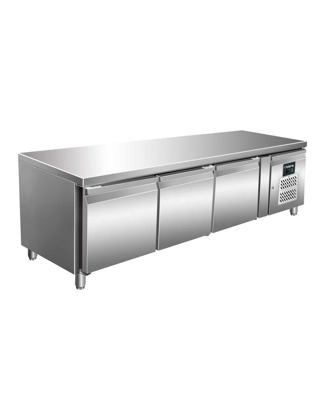 Material: (hölje och insida) rostfritt stål; (arbetsbänk) rostfritt stål