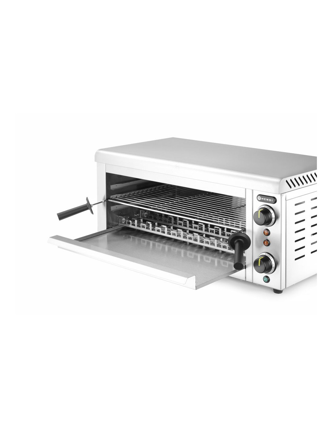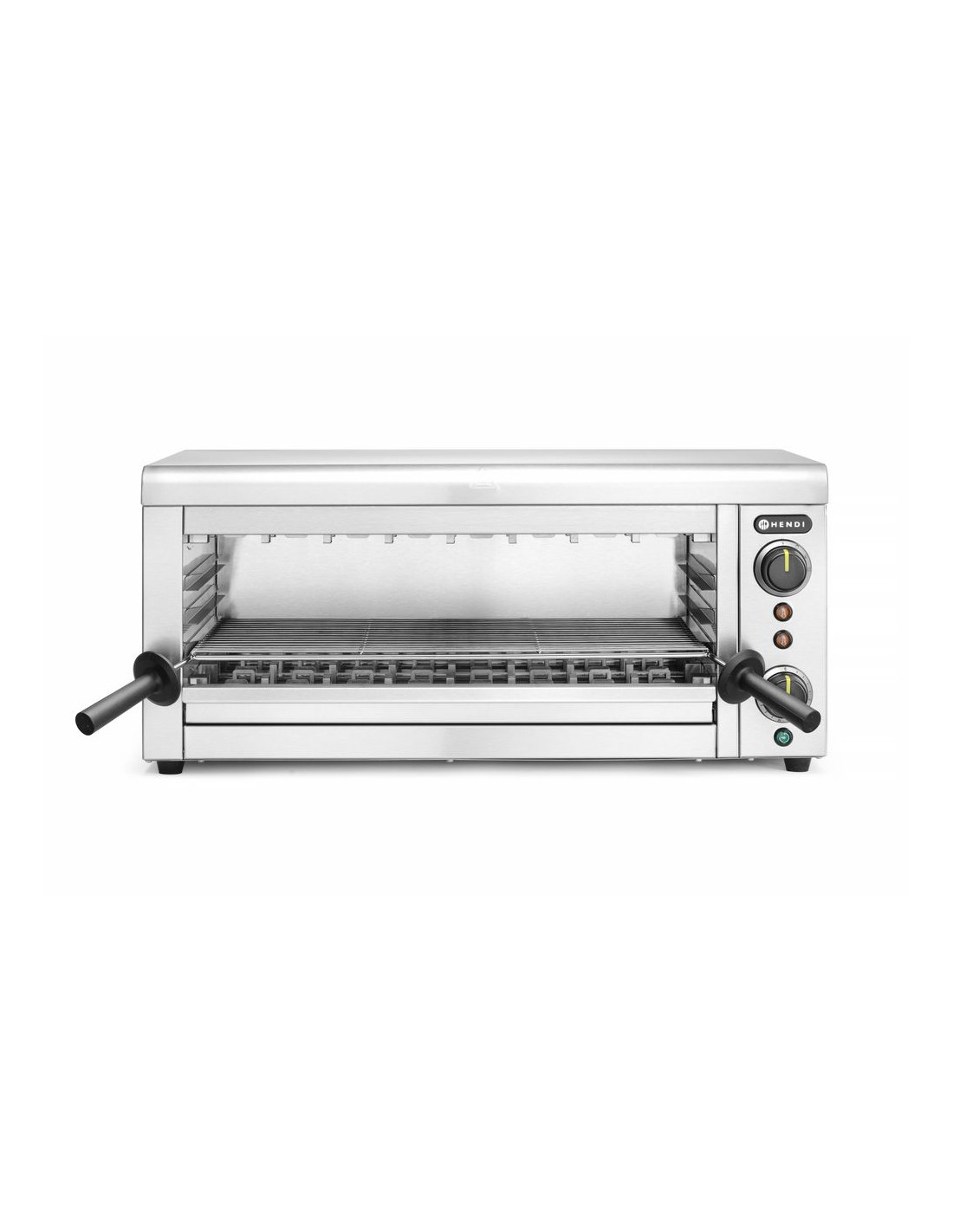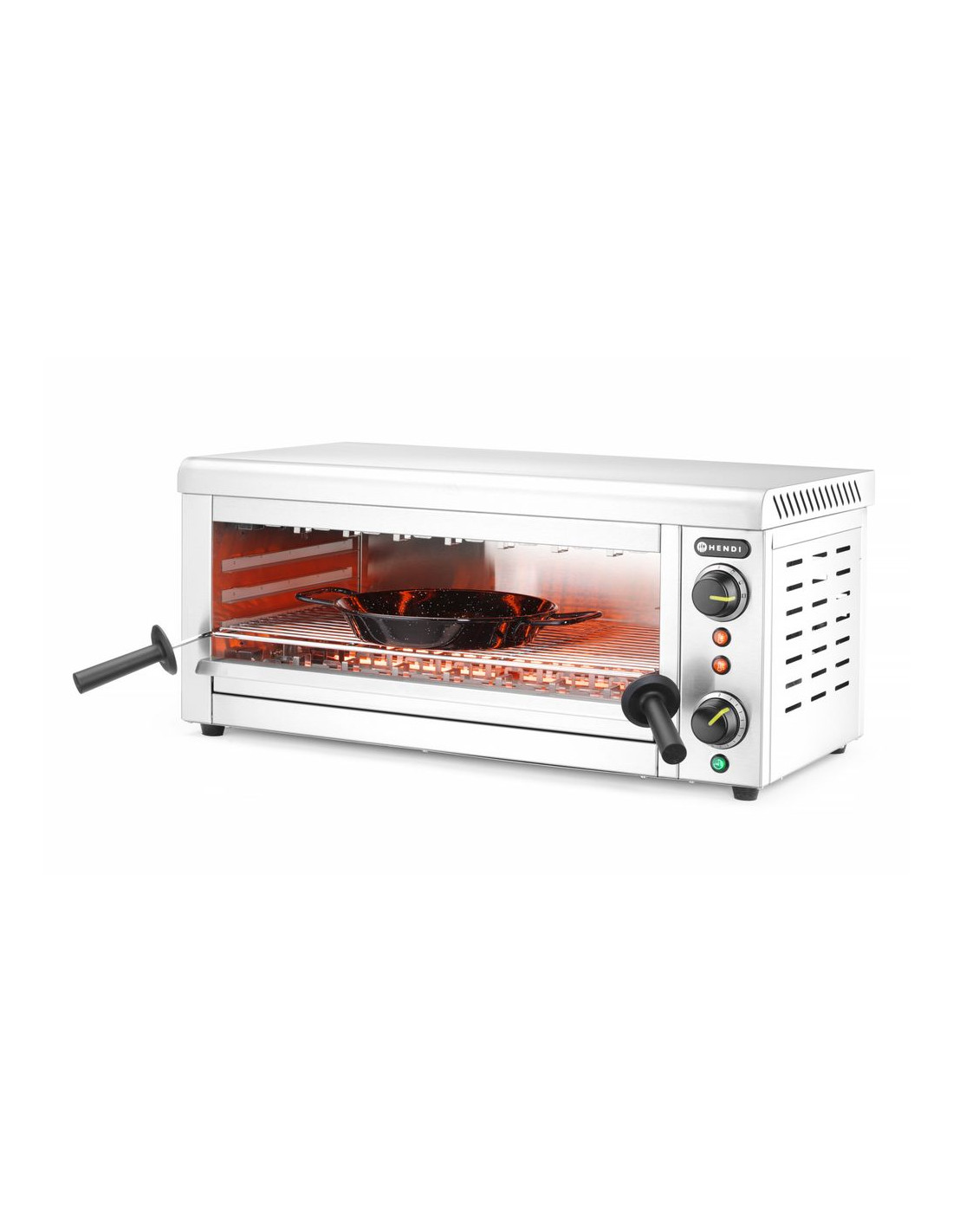 Det är möjligt att placera GN1/1-formar i ugnskammaren. Perfekt för grillning eller uppvärmning av rätter eller smörgåsar. Med infrarött kvartsvärmeelement uppe och nere. Utrustad med 15 minuters timer och indikatorlampa. 3 möjliga gallerhöjder, gallerhandtag försedda med värmesköld. Med smulbricka. Uppfyller IPX3-normen.