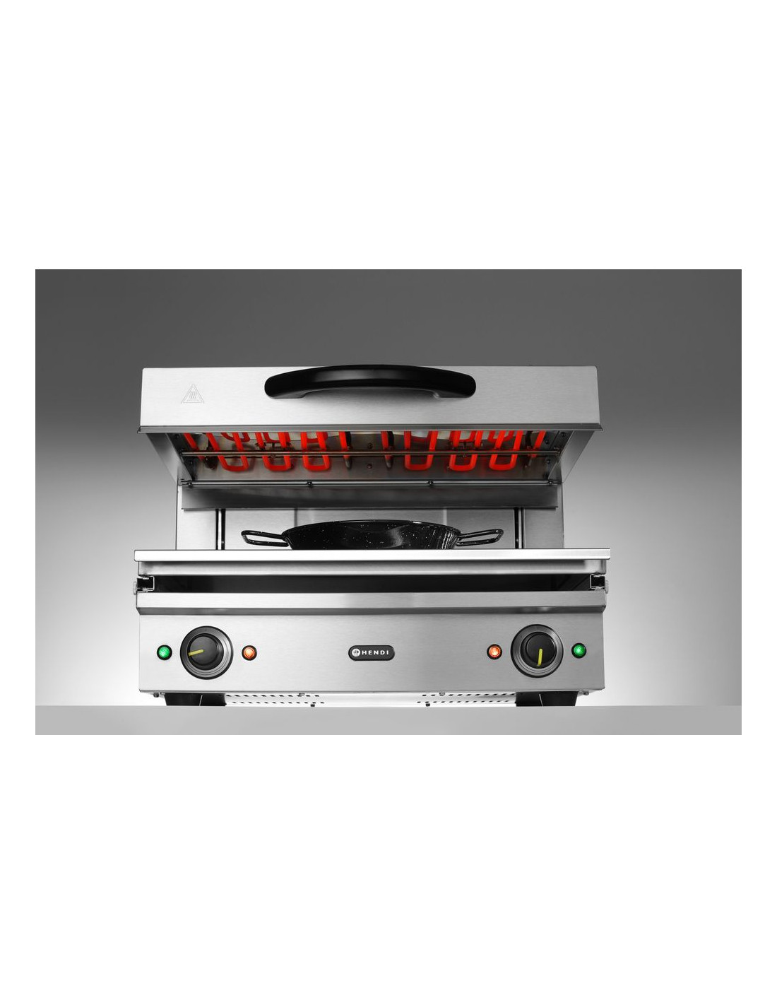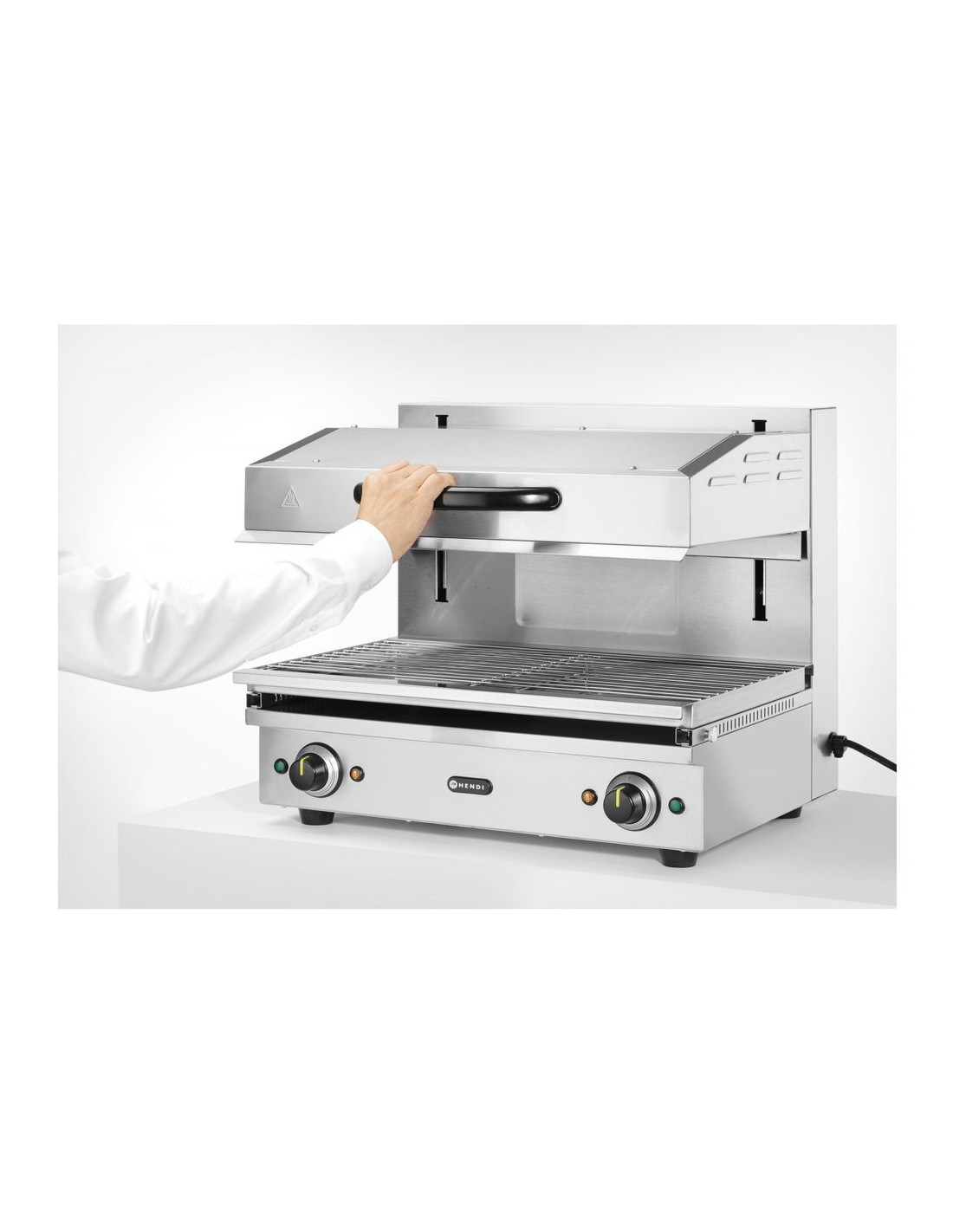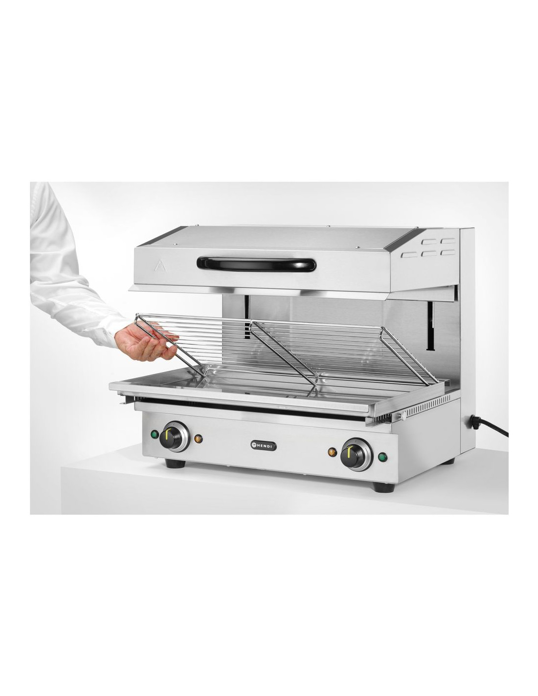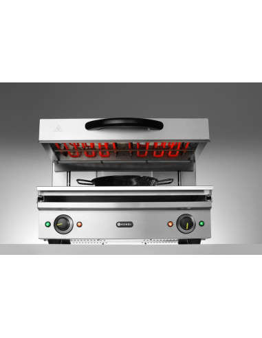 Typ 600 - ram i rostfritt stål. Idealisk för grillning eller för att hålla rätter/smörgåsar varma och krispiga. Termostat steglöst justerbar upp till maximalt 300 °C, med indikatorlampor. 2 oberoende värmeområden. Justerbar höjd med hjälp av smidigt lyftsystem. Avtagbar dropp-/smulbricka med 590x350 mm galler.