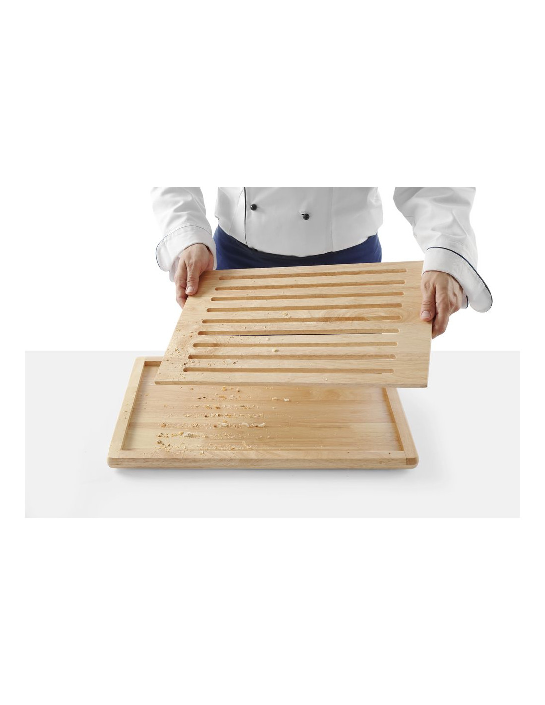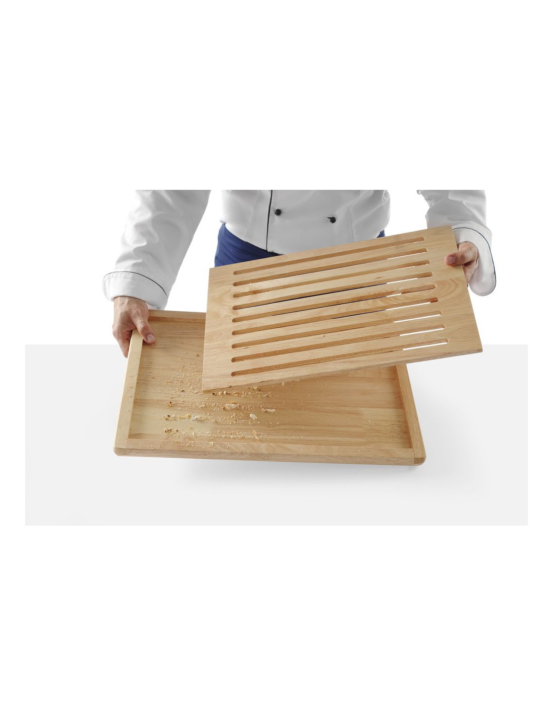 HENDI brödskärbräda har en inbyggd smulbricka med ett avtagbart galler för att hålla arbetsytan ren.