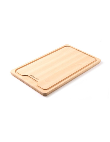 Massiv skärbräda i bokträ. Med spår för att förhindra läckage.