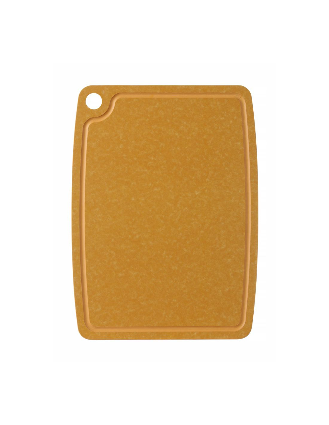 Tillverkad av träfiberkomposit, tätare och mer hållbar än vanligt naturligt trä. Spår runt omkretsen för vätskeuppsamling – minskar spill på bänkskivor. Försedd med halkfria silikonfötter. Med upphängningshål. Finns i 3 storlekar och 2 färger: – svart (koderna 505755, 505762, 505779), – naturligt trä (koderna 505724, 505731, 505748). Tål maskindisk.