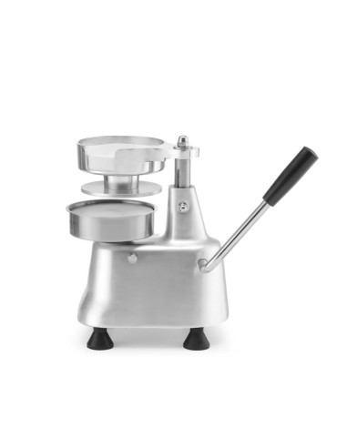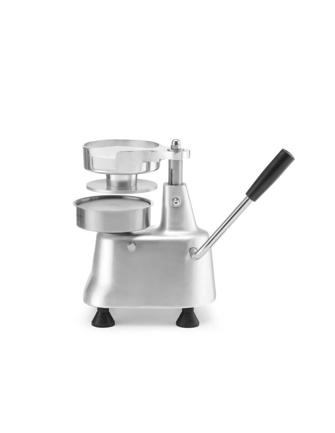 Nedre hölje och övre presskolv tillverkade av anodiserad aluminium. Reser automatiskt burgaren efter formning. En praktisk spak för att frigöra format kött från formen. Inklusive avdelare av pappersbiffar. Inkluderar knapp för att sänka pressen. Halkfria fötter. Pressen gör hamburgare upp till Ø100 mm (282793), Ø130 mm (282113).