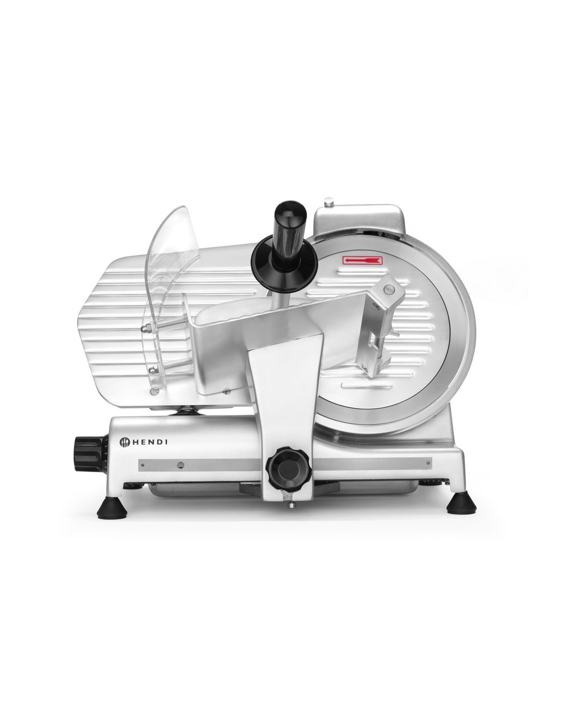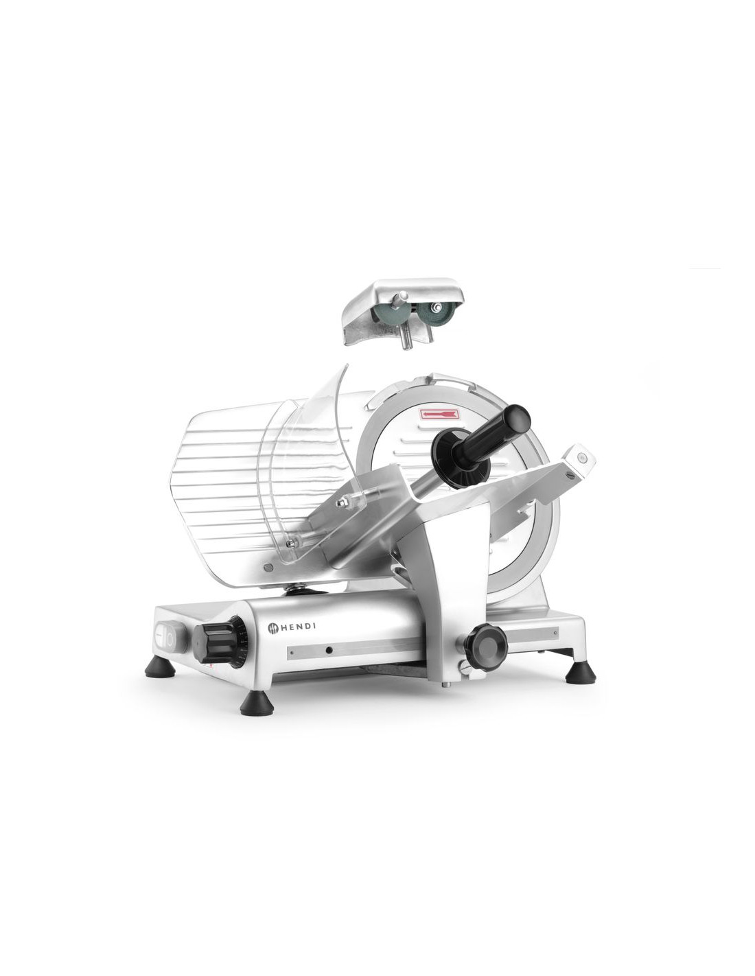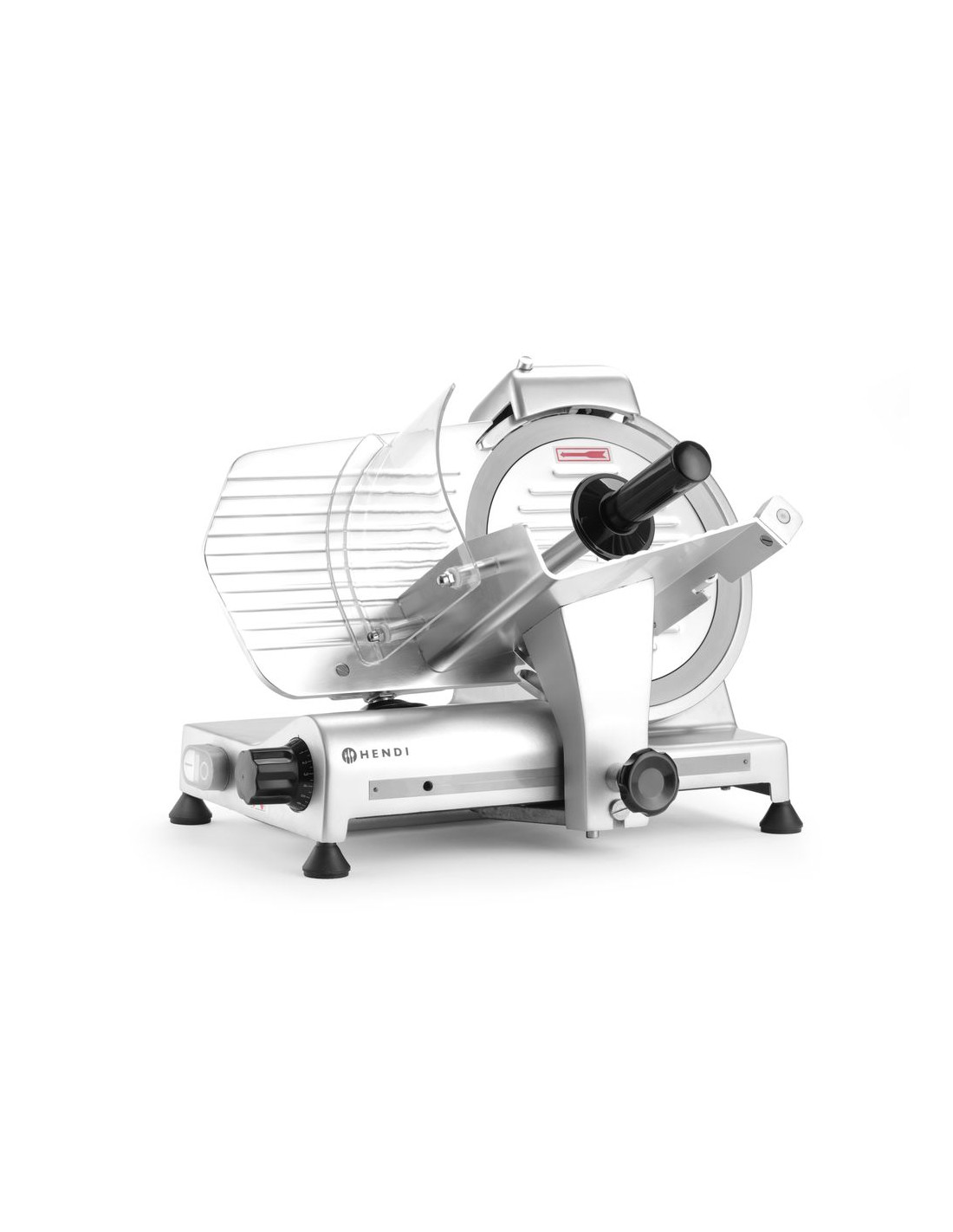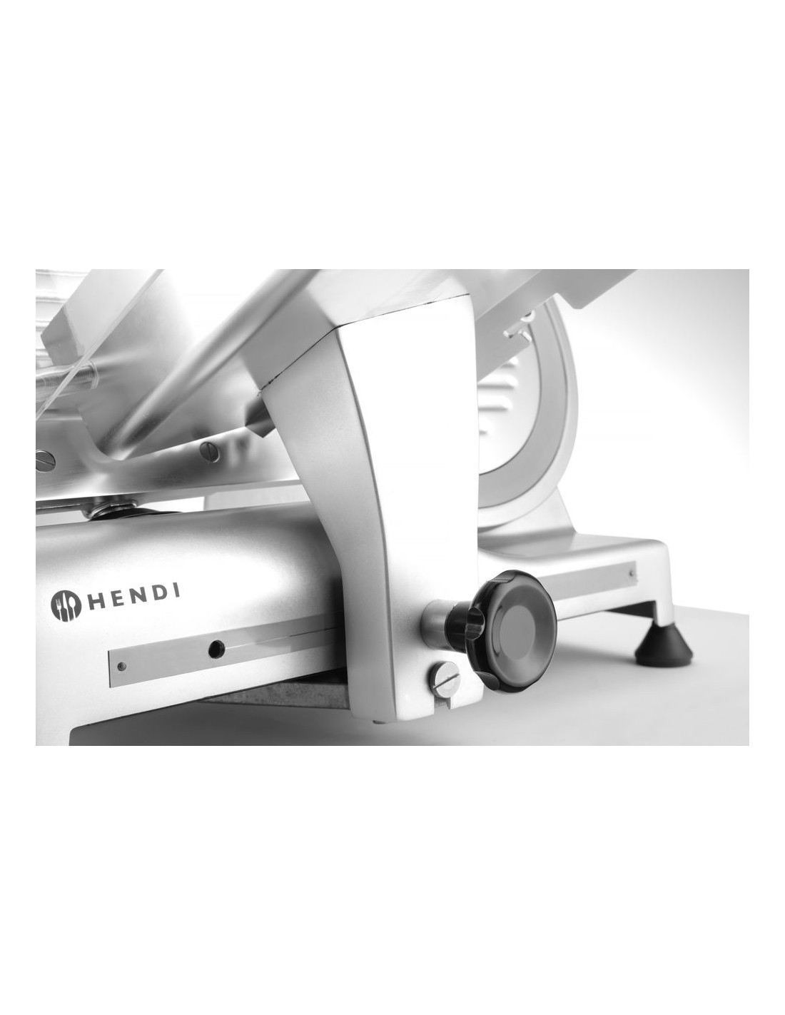 Hölje av belagd aluminium. Härdat rostfritt stålblad, vinklat. Luftkyld motor med överhettningsskydd. Kraftfull motor för att skära tufft kött. Utrustad med bladskydd och inbyggd slipmaskin. Vagn med säkerhetsskydd, klämelement och vertikal låsanordning. Snabb och enkel demontering för enkel rengöring. Uppfyller alla säkerhetskrav för utrustning för professionellt bruk, dvs: – genom att ställa in vredet på "0" skärtjocklek håller bladet sig bakom skyddet. – skydd mot oönskad start om slipmaskinen eller bladskyddet tas bort. – möjlighet att låsa och ta bort vagnen endast med bladet inställt i "0" skärtjockleksläge. Ej lämplig för att skära ost. Ostskivning möjlig med en separat tillgänglig non-stick kniv.