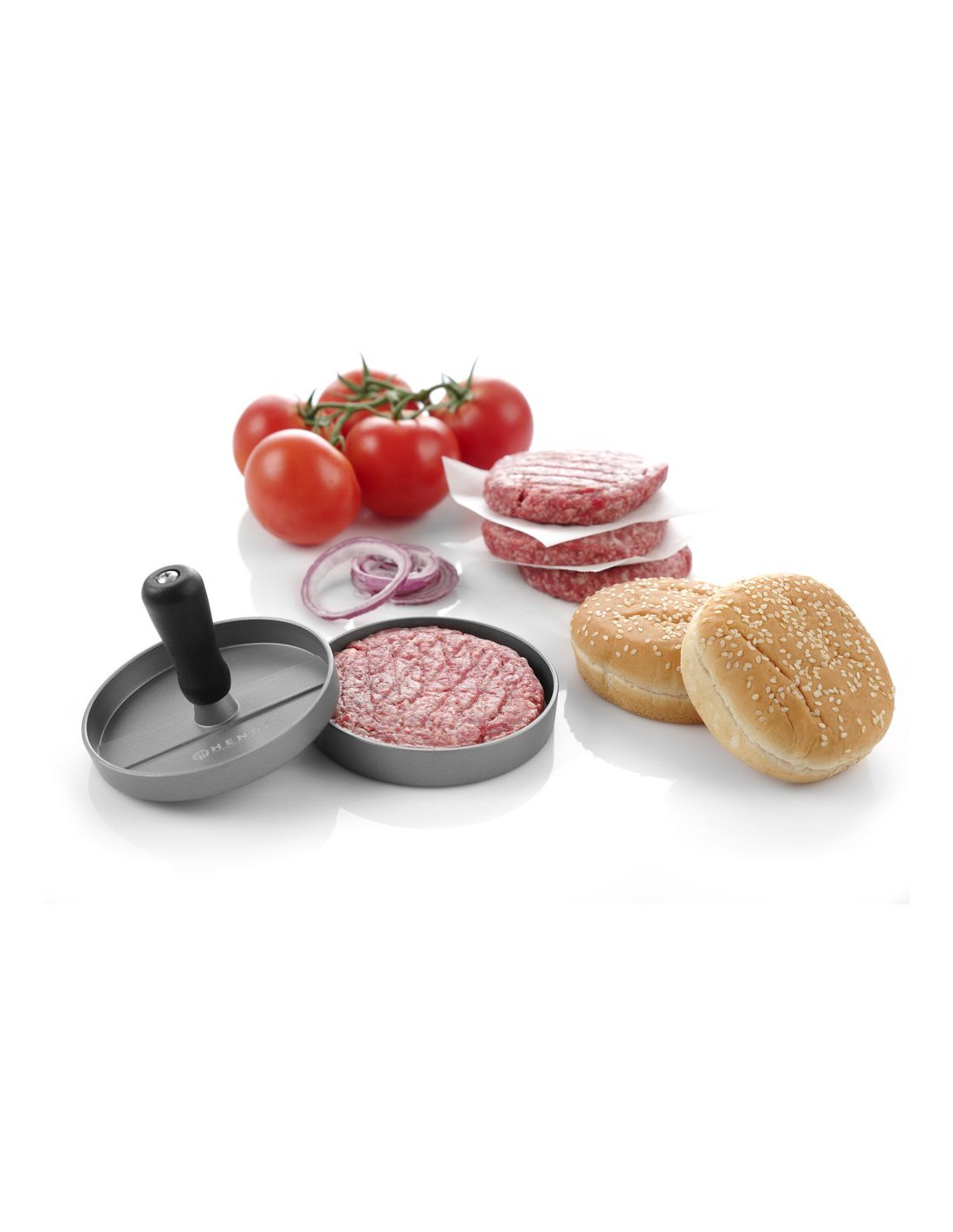 Ger hamburgare på 115 mm. Tillverkad av aluminiumlegering med non-stick-beläggning. Handtag av polypropen.