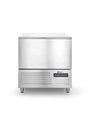 Kammare lämplig för GN 1/1-behållare och 600x400 mm brickor. Givare medföljer som standard, forcerad kylning, manuell avfrostning. Kondensvattenbricka under enheten. Separata funktioner för glassfrysning (-20 °C) och djupfrysning av ytor (-40 °C). Invändig LED-belysning. Ljud- och ljuslarm vid öppen dörr. Dörröppningsriktning justerbar. Mikrobrytare som löser ut enheten när dörren öppnas. Digital termostat. Hölje och kammare i rostfritt stål. Klimatklass 5, smidig drift vid en omgivningstemperatur upp till +40 °C. Köldmedium: R290. Justerbar höjd på fötterna i rostfritt stål.