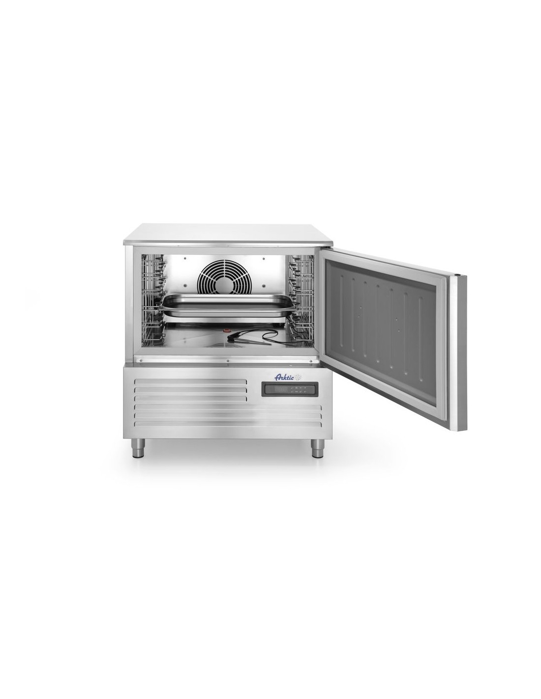 Kammarkapacitet: 5 x GN 1/1 eller 5 x 600x400 mm brickor. Kammarens innermått: 640x400x(H)360 mm. 5 uppsättningar skenor, 65 mm från varandra. Kapacitet vid kylning till +3° C: 15 kg. Kapacitet vid frysning till -18°C: 10 kg. Vikt: 76 kg.