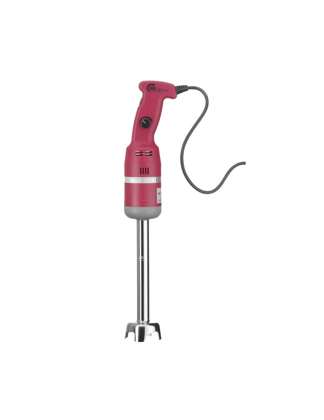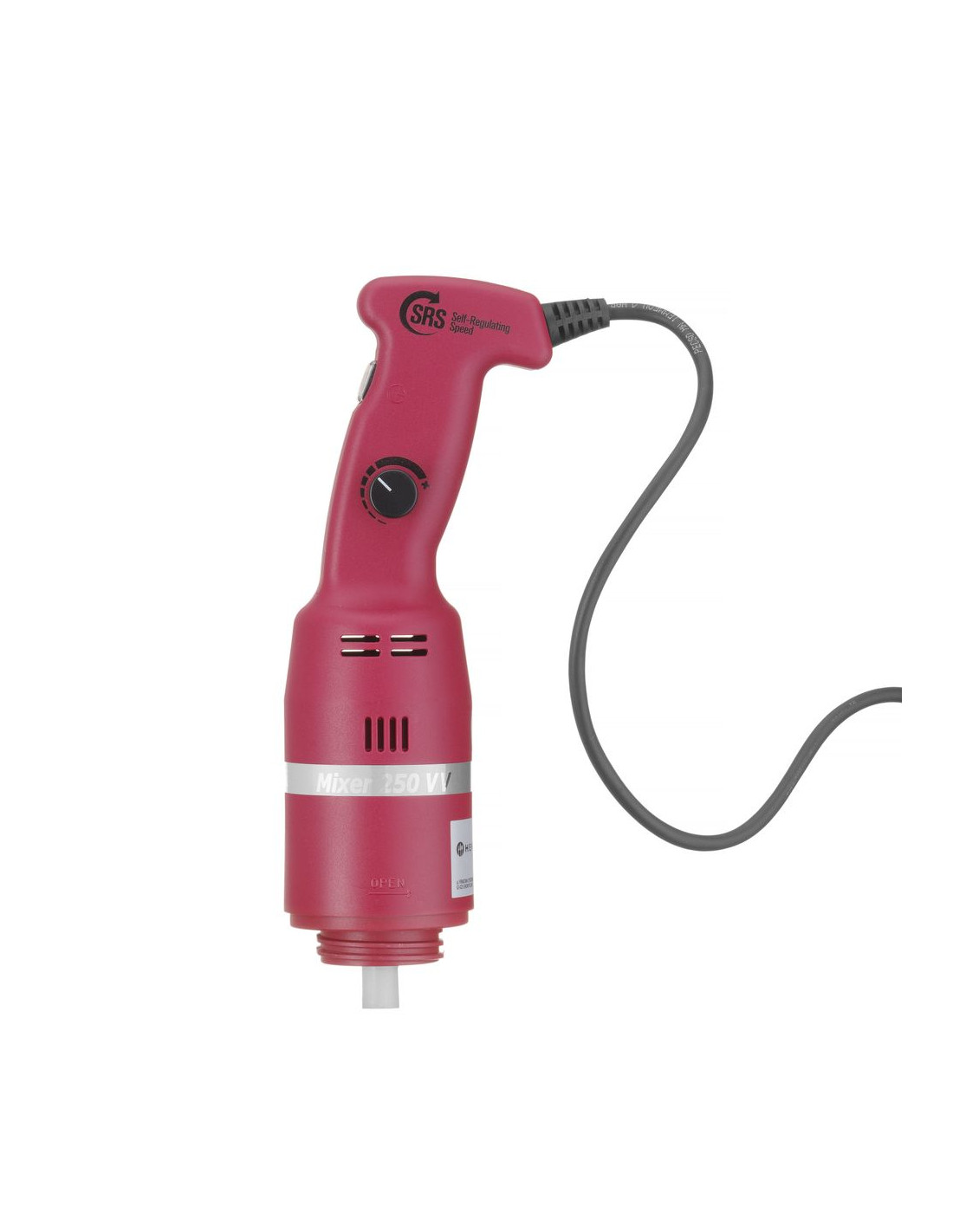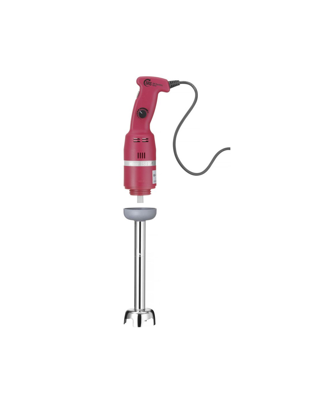 Professionell version Hölje av fiberförstärkt nylon Skaft och blad i rostfritt stål Visptillbehör ingår (290 mm) Koppling för enkelt tillbehörsbyte Lätt att rengöra Ergonomiskt handtag Skaftlängd: 250 mm Lämplig för disk upp till 20 liter Hastighetsreglage Hastighet: 2500 - 15000 varv/min Vikt 1,9 kg