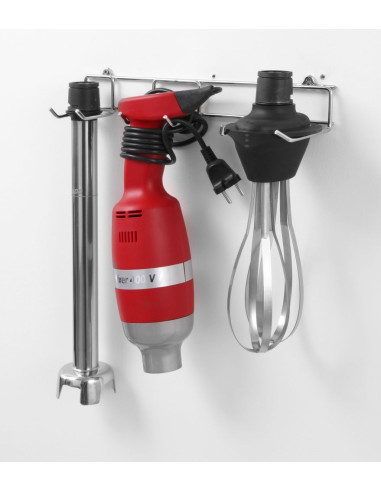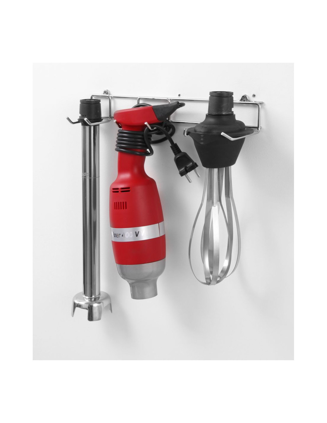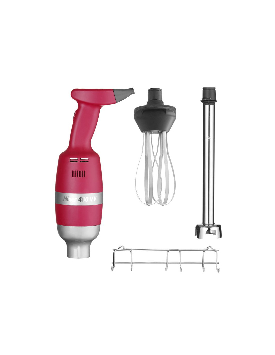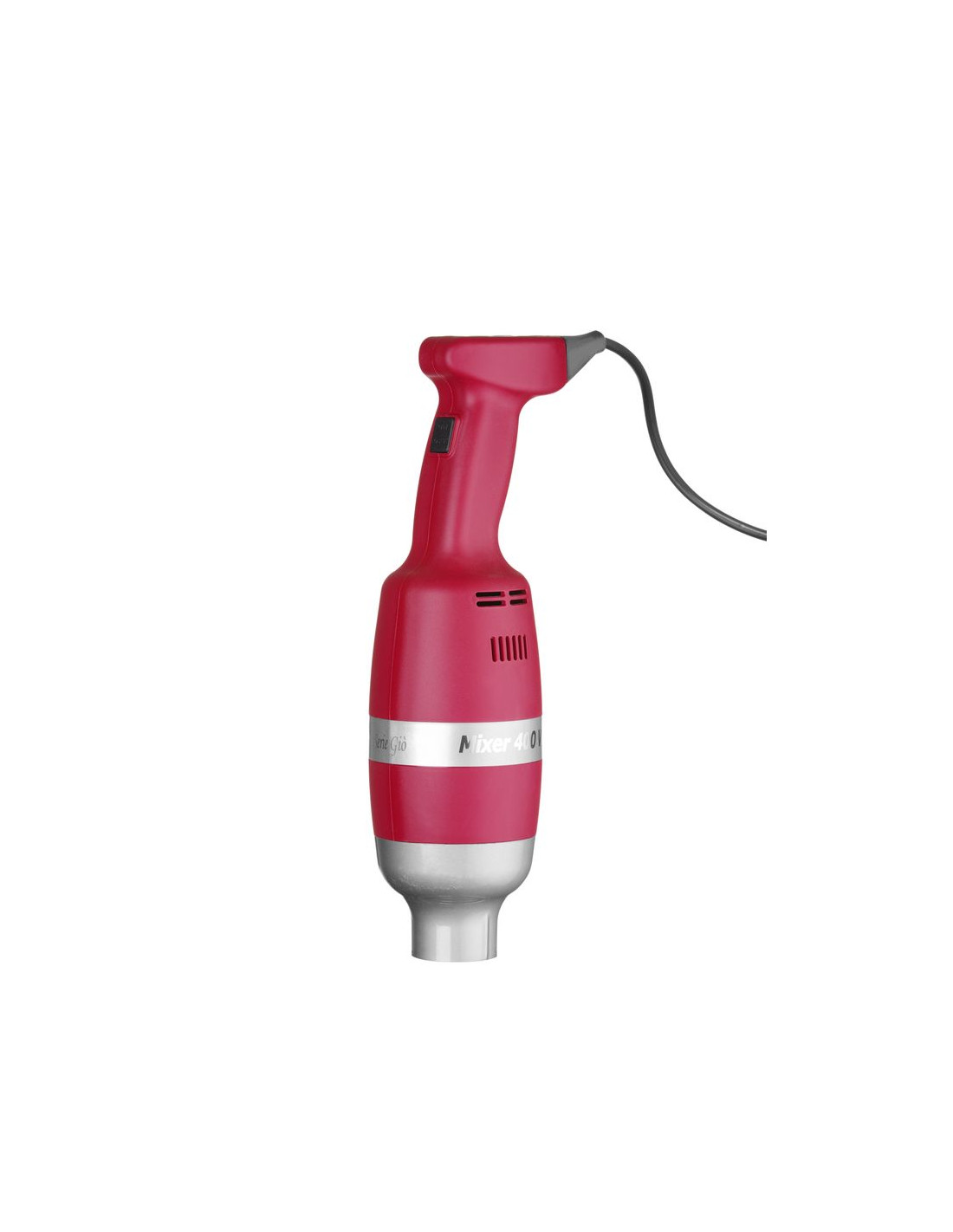 Professionell version. Hölje tillverkat av fiberförstärkt nylon. Skaft och blad i rostfritt stål. Lätt att rengöra. Med vispfäste och väggmonterat förvaringsställ. Elektronisk kontrollpanel. 9 hastighetsinställningar mellan 2000 och 9000 varv/min. Kapacitet upp till 80 liter. Skaftlängd: 400 mm. Vikt: 4,75 kg.