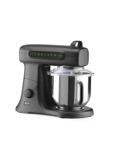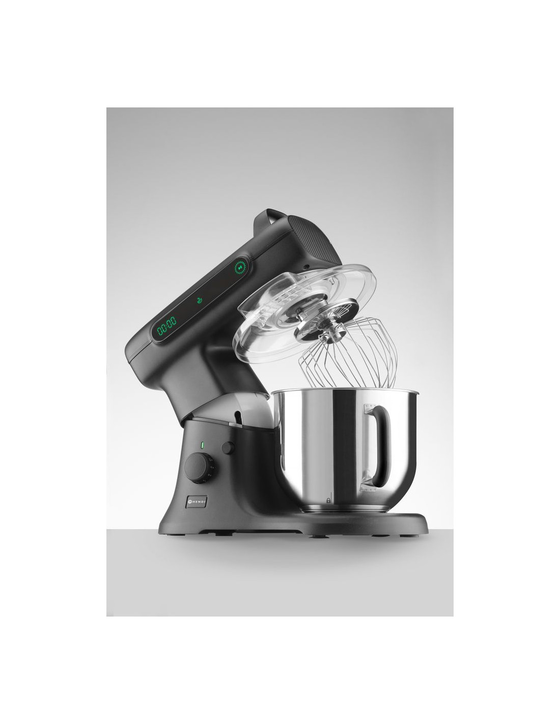 Hölje av gjuten aluminium. Skål av rostfritt stål. Silikonbelagt handtag för ett säkert grepp. Robust konstruktion för stabil drift. Tyst motor i kombination med hållbarhet för lång användning. Kylsystem möjliggör kontinuerlig drift i upp till 60 minuter. 11 hastighetsinställningar. Timerfunktion. Fyra förinställda program: Deg, Sockerkaka, Vispning av grädde, Vispning av ägg. Överhettningsskydd. Kapacitet: 7 liter. - Mjöl: 0,2–1,5 kg. - Äggvitor: 2–20 ml. - Vispgrädde: 150–1 500 ml. - Färsk grädde: 0,1–2 l. Inkluderade tillbehör: - Visp, paddel och degkrok i rostfritt stål (18/8) - Paddel med silikonkant i PA (polyamid/nylon). Alla tillbehör tål maskindisk.