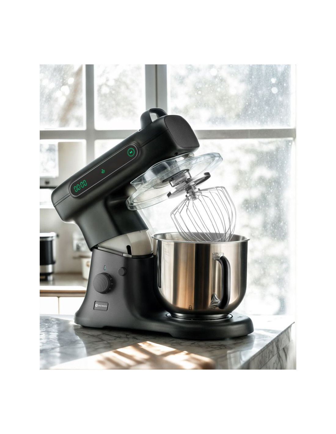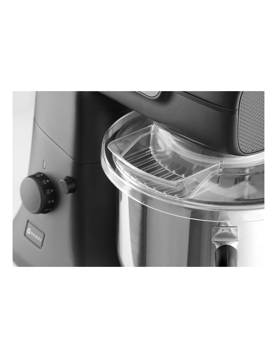 HENDI planetblandaren Blackbolt PRO är konstruerad för professionellt bruk i enlighet med maskindirektivet. Den har en inbyggd mikrobrytare för att säkerställa drift endast när skålen är korrekt på plats och ett fast stänkskyddat lock med en säker ingrediensinsats utformad för att förhindra skador. Blandaren är utrustad med fyra diskmaskinssäkra tillbehör för att hantera en mängd olika uppgifter utan problem.