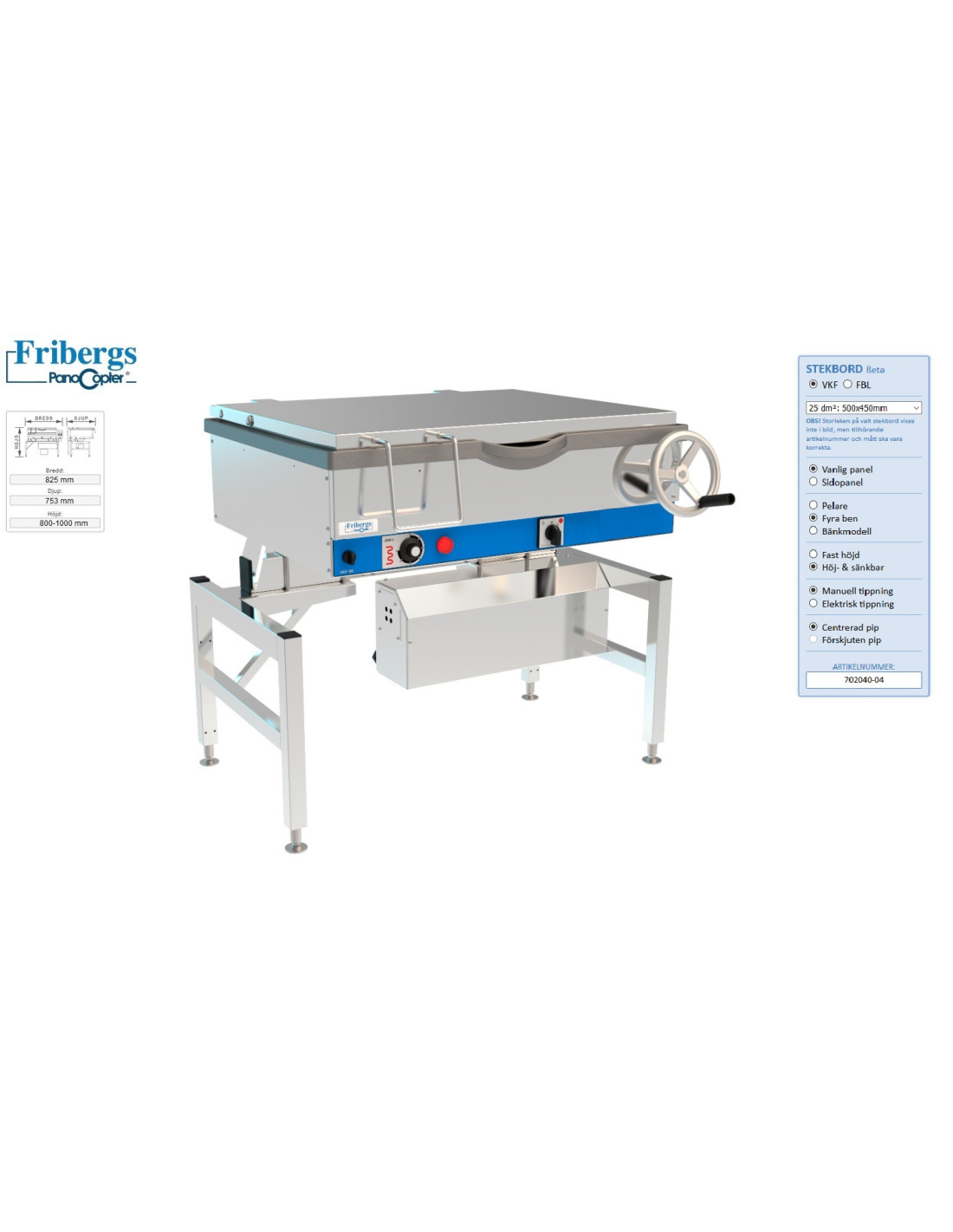 El-tipp, pelarfot fast höjd. Djup 90mm. 1 stekzon.