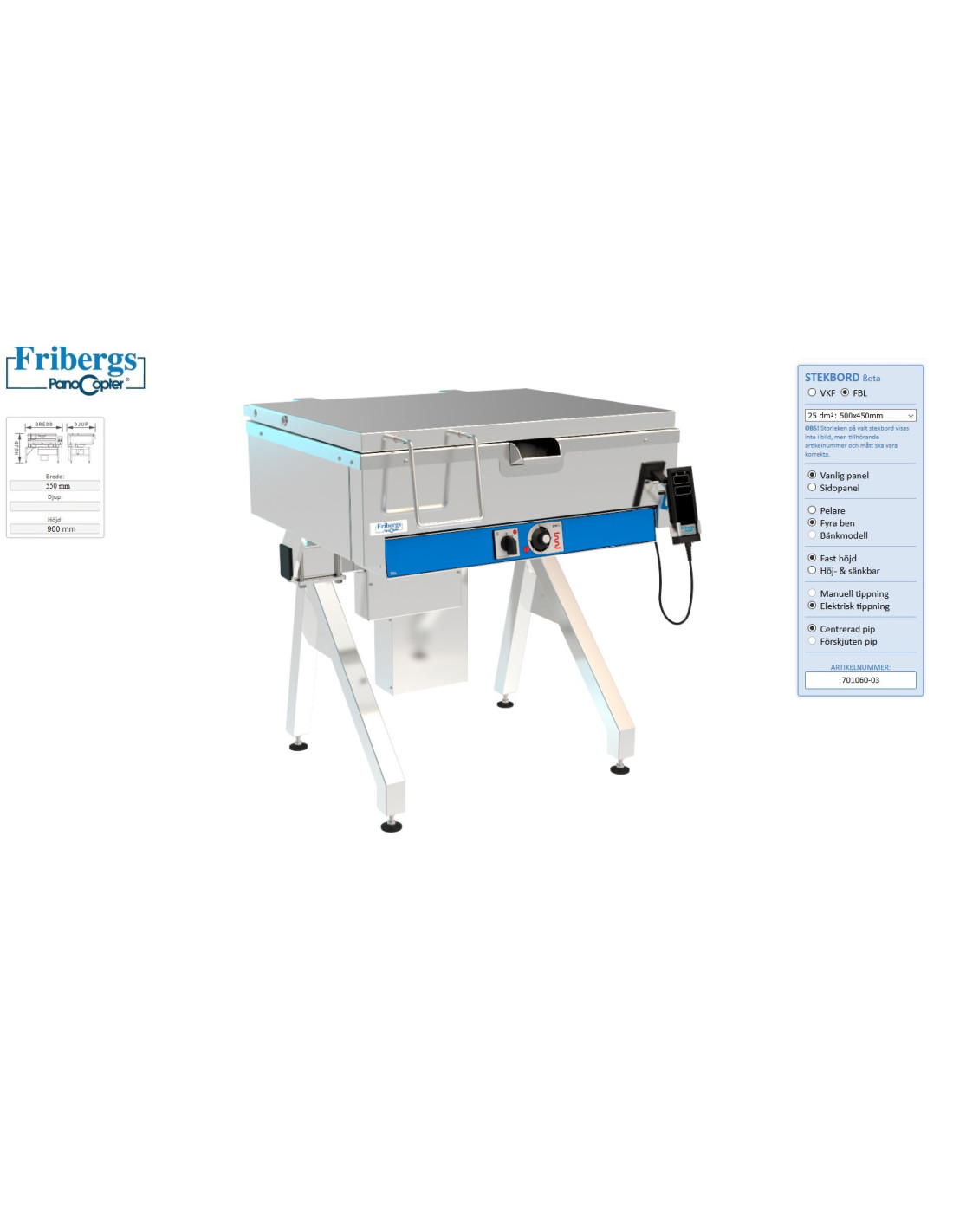 El-tipp, pelare höj- och sänkbar. Djup 65mm. 1 stekzon.