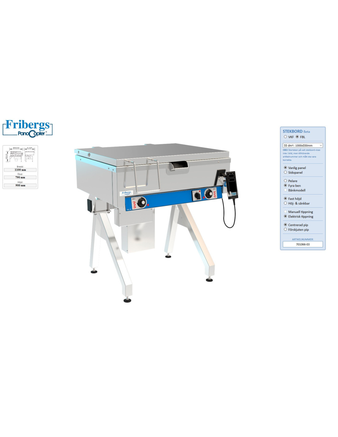 El-tipp, pelarfot fast höjd. Djup 65mm. 2 stekzoner.