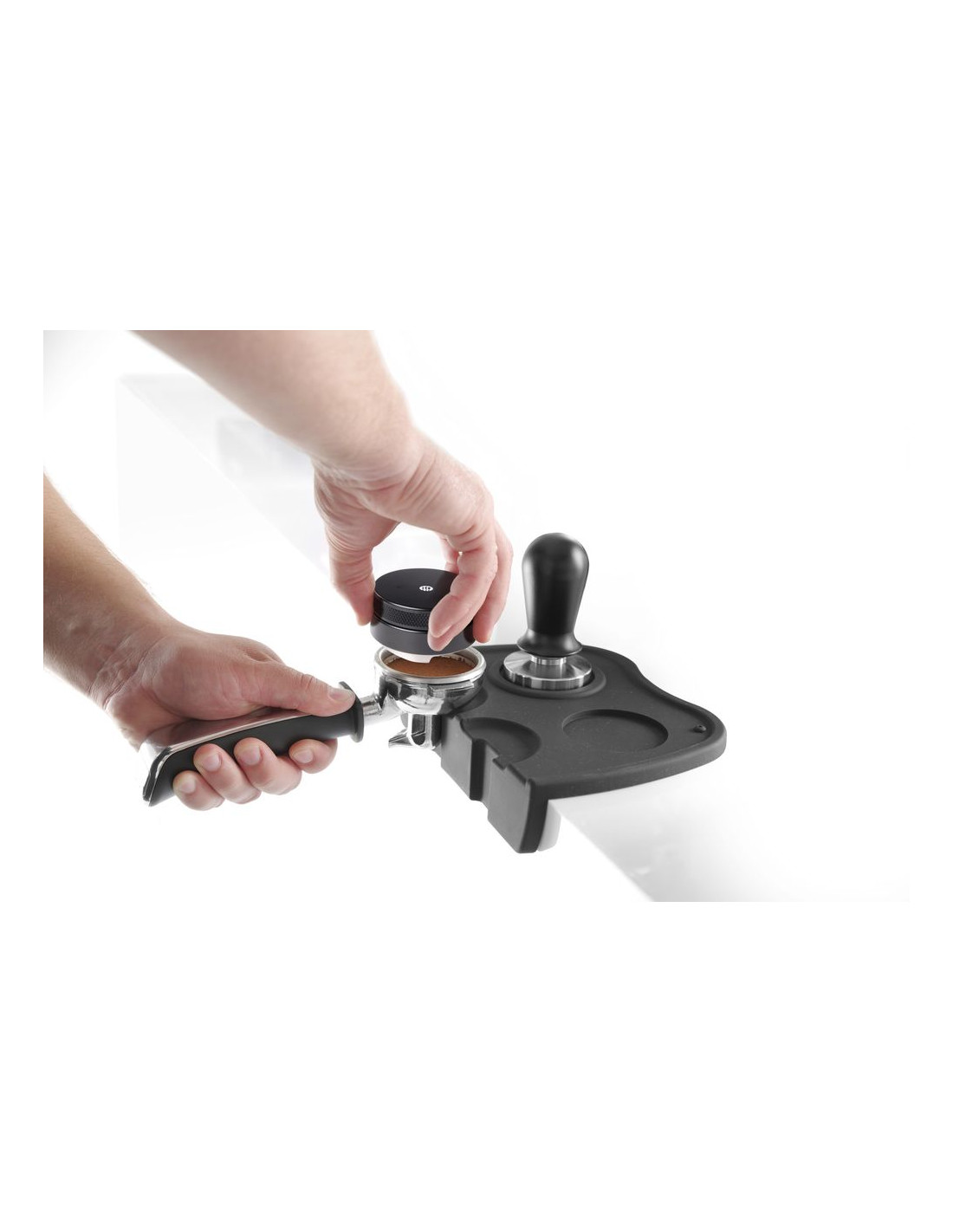 Fördelare tillverkad av rostfritt stål, för alla portafilter med 58 mm diameter. Grepp tillverkat av svart aluminium. Med 3 vinklade lutningar på toppen för att jämnt fördela kaffesumpen i portafilteret.