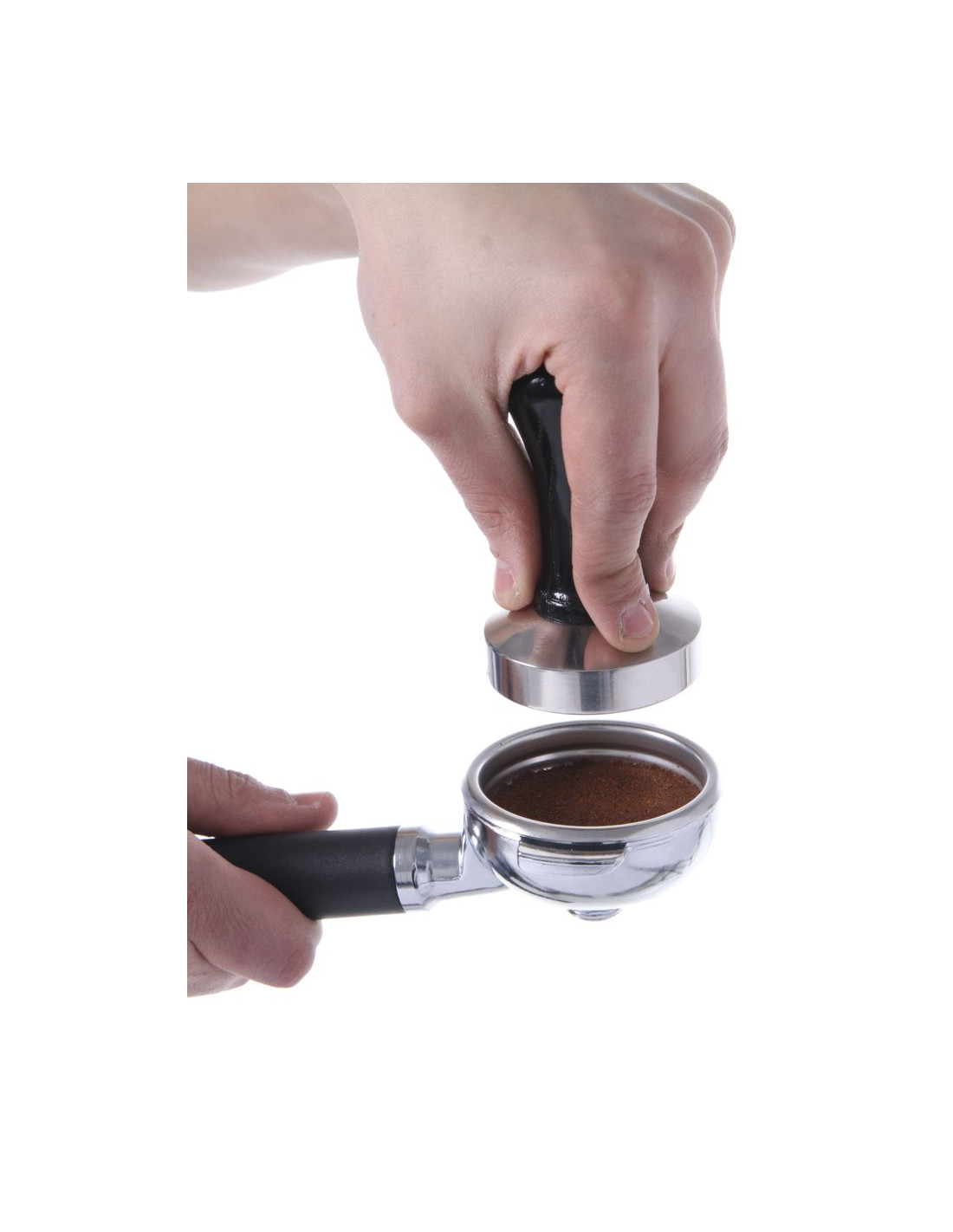 Används för att komprimera kaffe, passar de flesta espressomaskiner. Stampen är tillverkad av rostfritt stål. Målat trähandtag. Vikt: 380 g.