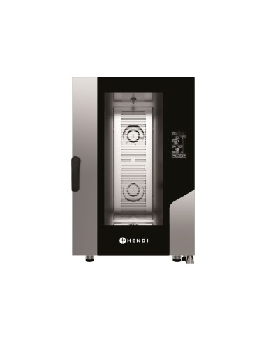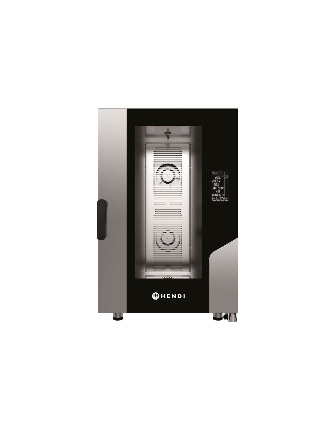 Tillverkad av 18/8 rostfritt stål. Pressad kammare med rundade hörn för enkel rengöring. Utrustad med LED-belysning och värmeisolering – energieffektiv och säker. Kondensdroppbricka med avlopp integrerat i dörren. Justerbara fötter säkerställer stabil och jämn placering. Dörregenskaper: Dubbelglasdörr, sval vid beröring – har gravitationsventilation mellan lagren. Dörren kan låsas i fyra lägen: 60°, 90°, 120° och 180°. Gångjärnsförsedd på höger sida. Avtagbar innerglasruta. Silikonpackning monterad i höljet. AirFlow+ – omdesignad deflektor säkerställer optimal luftcirkulation, oavsett var maten placeras. Humid+ – vattensystemet levererar vatten direkt bakom fläkten, vilket ger hög luftfuktighet och minimerar vattenförbrukningen. Vattenskyddsklassning: IPX4. Nödvändiga anslutningar: el, renat vatten och avloppssystem. Vatteninlopp: 3/4", avlopp: Ø30 mm (inklusive kammaravlopp). Stor 7-tums pekskärm på kontrollpanelen. Temperaturområde: 30 °C till 270 °C. Timer: upp till 11 timmar och 59 minuter, eller kontinuerlig drift. Tillagningslägen: varmluft, ånga och kombi (varmluft + ånga). Fläkthastighet: 3 hastigheter, normalt läge, semistatiskt läge. Ånga genereras genom direkt sprayning på fläkten, elektroniskt styrd i 10 steg (0–100 %). Lagra upp till 100 recept, vart och ett med upp till 10 steg. Tillagning på flera nivåer – tillaga olika rätter under samma förhållanden med oberoende tidtagning. Ytterligare funktioner: Förvärmning – värmer upp till 30 °C över den inställda temperaturen. Hållning – bibehåller automatiskt serveringstemperaturen efter att programmet är avslutat. Hållskåp – håller maten varm och fuktig tills den serveras. Nedkylning – snabb kylning av kammaren för att snabbt starta nya processer vid lägre temperaturer. Jäsugn – ideala temperatur- och fuktighetsförhållanden för jäsning av deg. Fördröjd start – schemalägg start upp till 24 timmar i förväg. Delta-T-sond – precisionstillagning genom att övervaka matens innertemperatur. USB-port – enkel uppladdning/nedladdning av recept och HACCP-data.
