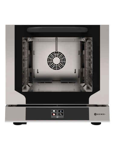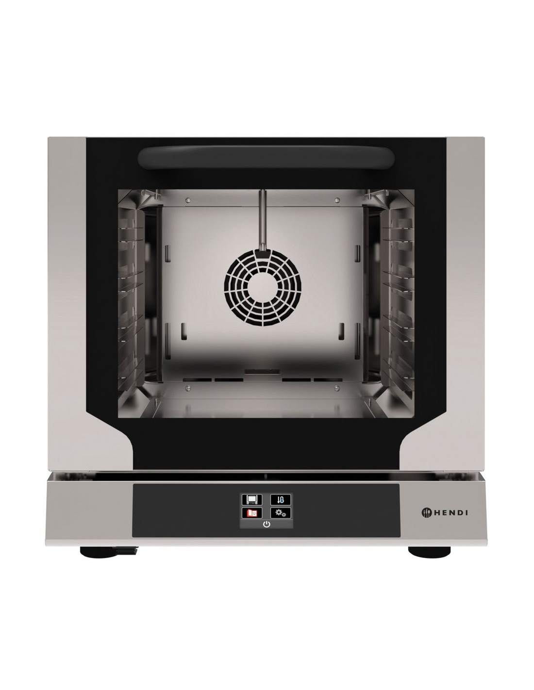 Med 1 fläkt, erbjuder auto-reverse-funktion med 2 hastigheter (normal och reducerad). Direkt ånginsprutning, elektroniskt styrd, sprutar vatten direkt på fläkten. Pekskärmskontrollpanel med färgade ikoner. Utrustad med en USB-port – för nedladdning av HACCP-data. Programmerbar: 99 program, med 4 steg vardera. Förvärmningsfunktion upp till 180 °C.