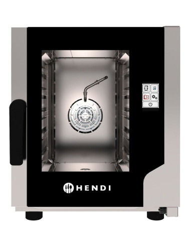 HENDI varmluftsångugn Snack 5 x GN 2/3 har en dubbel, värmetålig glasdörr med säker tätning och energieffektiv LED-belysning. Med 99 programmerbara tillagningsinställningar, justerbara ångnivåer och exakt temperatur garanterar den optimala tillagningsresultat varje gång. Dess kompakta italienska design gör den idealisk för mindre anläggningar.