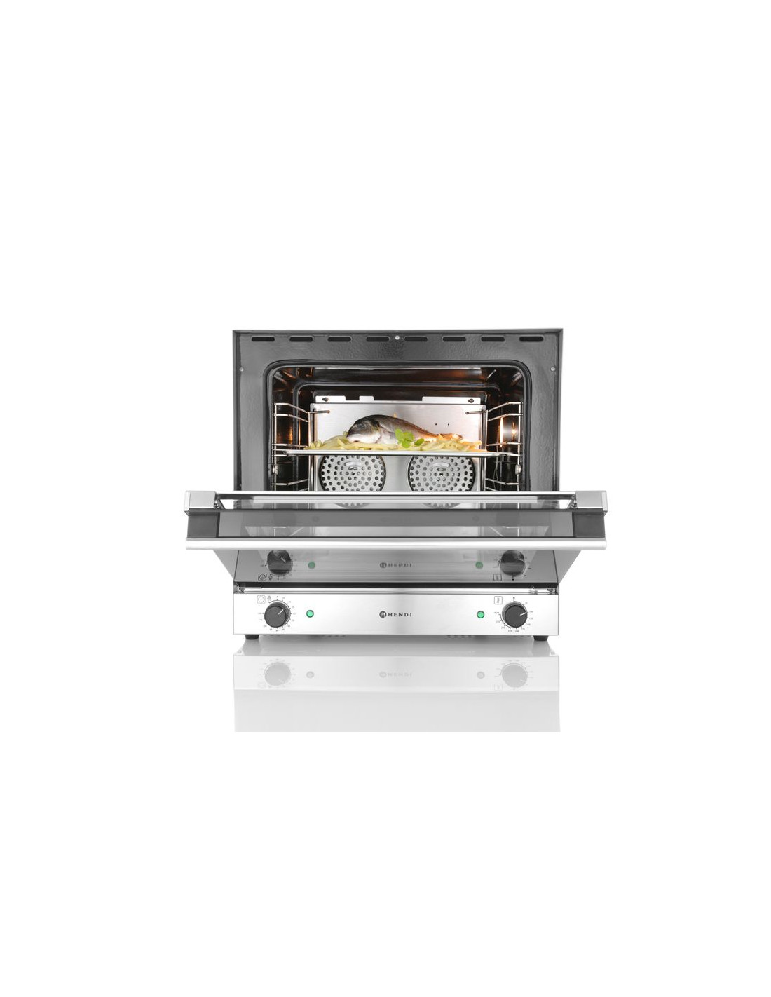 HENDI H90 varmluftsugn är en extremt praktisk apparat, oumbärlig för alla cateringfirmor som serverar varma måltider. Denna multifunktionella ugn låter dig tillaga läckra bakverk, pajer, gratänger eller bröd. Den lilla varmluftsugnen på 2670 W tar liten plats, vilket ger dig många alternativ.