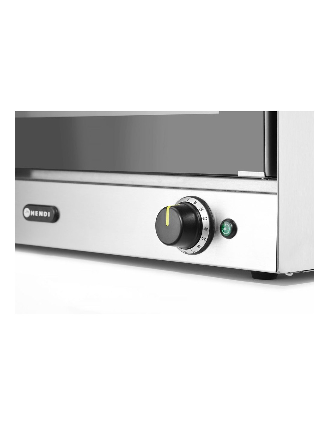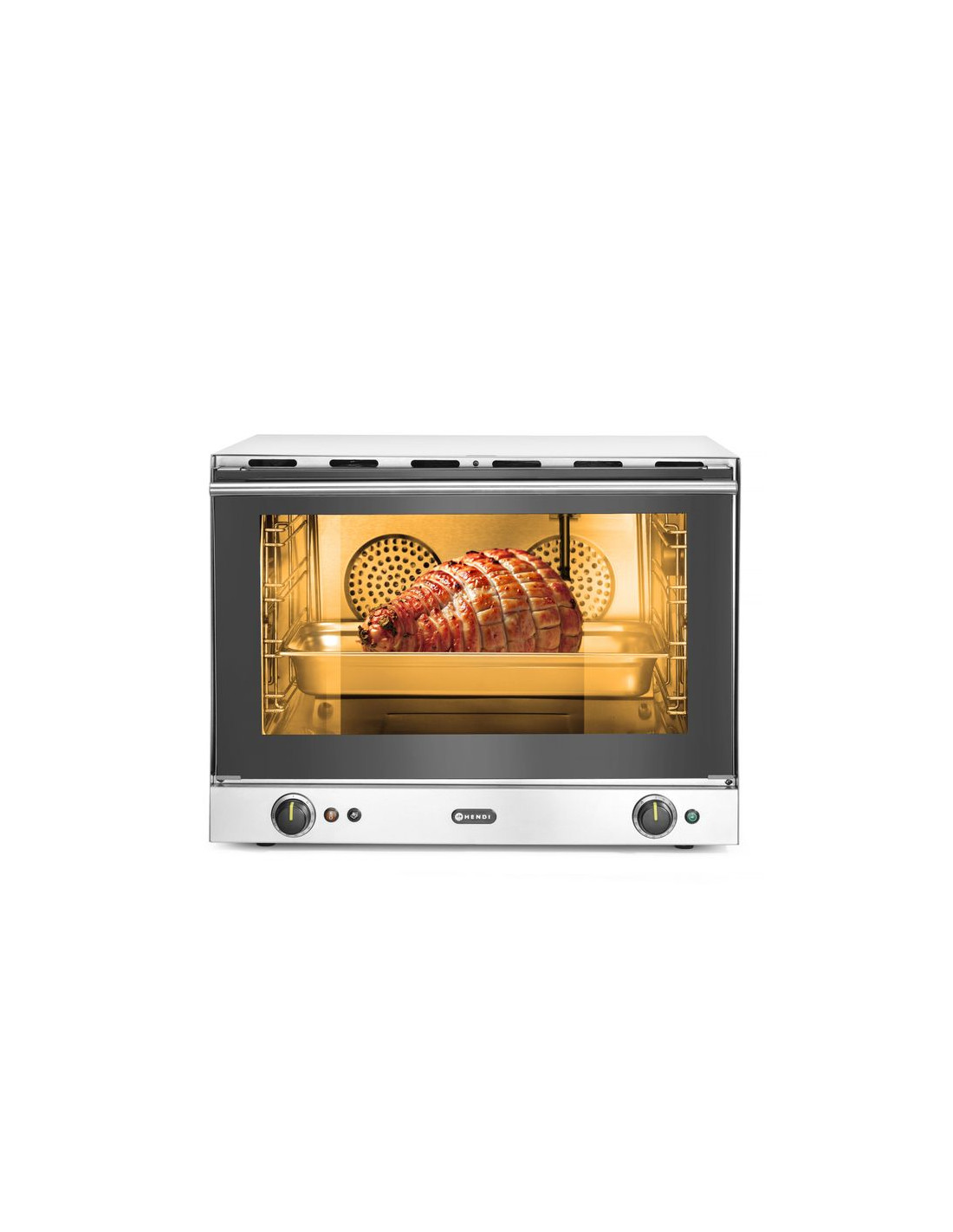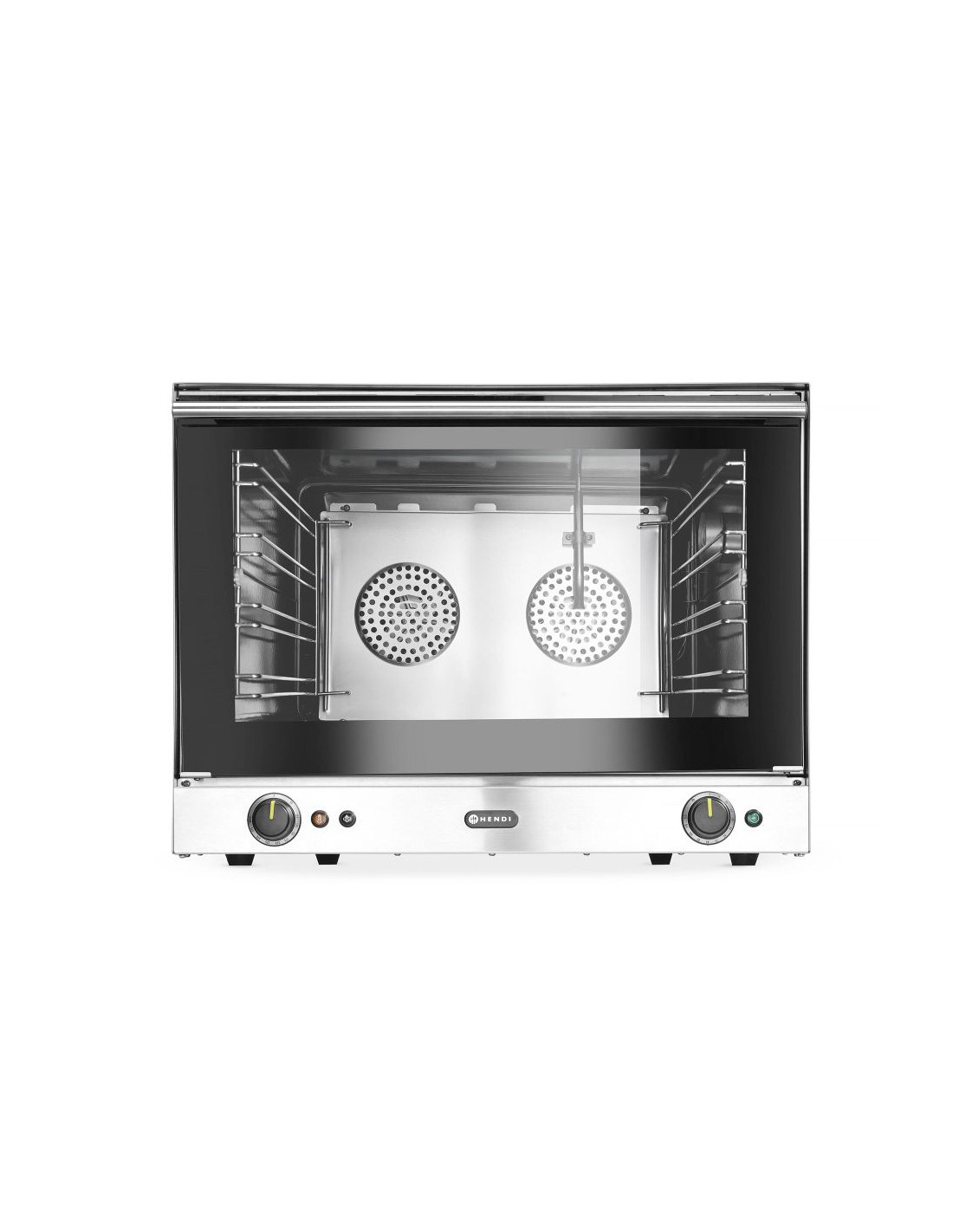 HENDI varmluftsugn H100 är en robust varmluftsugn i rostfritt stål med dubbla fläktar och värmeelement för jämn prestanda. Den har en sval dubbelglasad dörr, innerbelysning och rymmer 4 GN 1/1-plåtar med 75 mm avstånd. En 120-minuters timer ger smidig drift i kök med hög belastning.