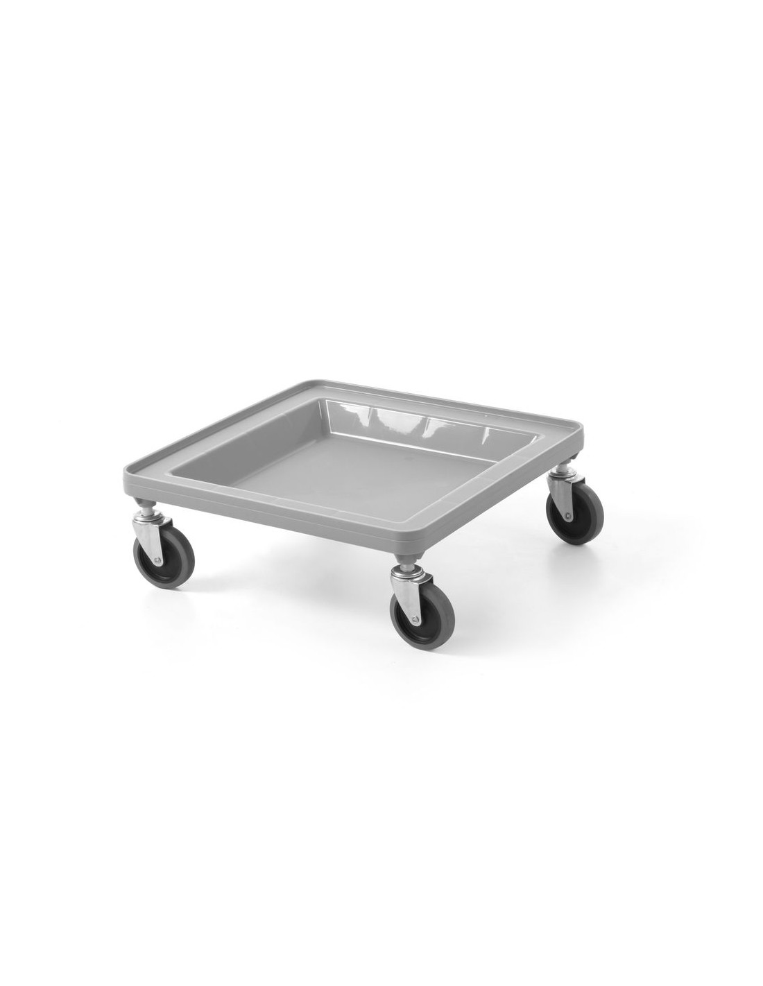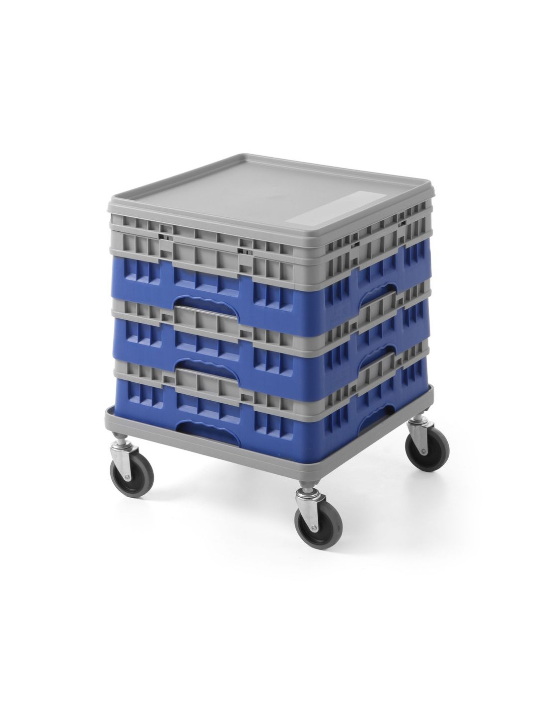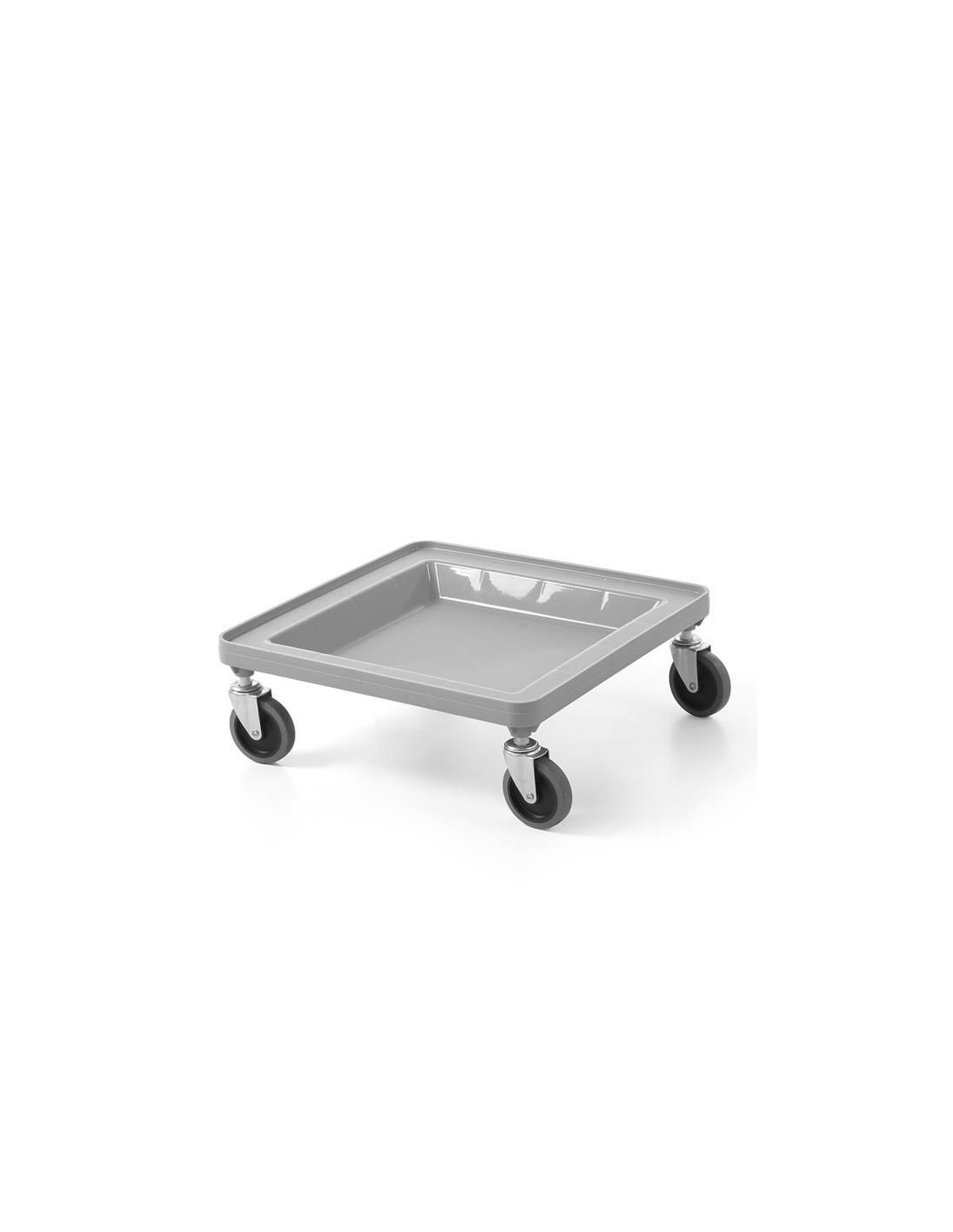 Tillverkad av polypropen. 4 svänghjul. Utformad för att transportera universalställ på 500×500 mm.