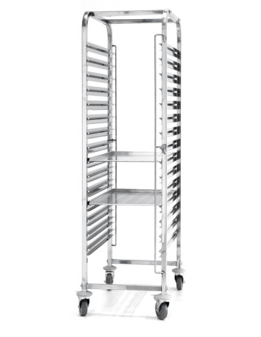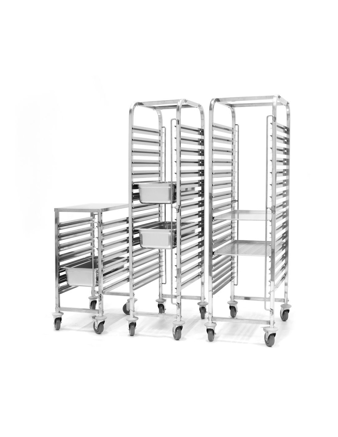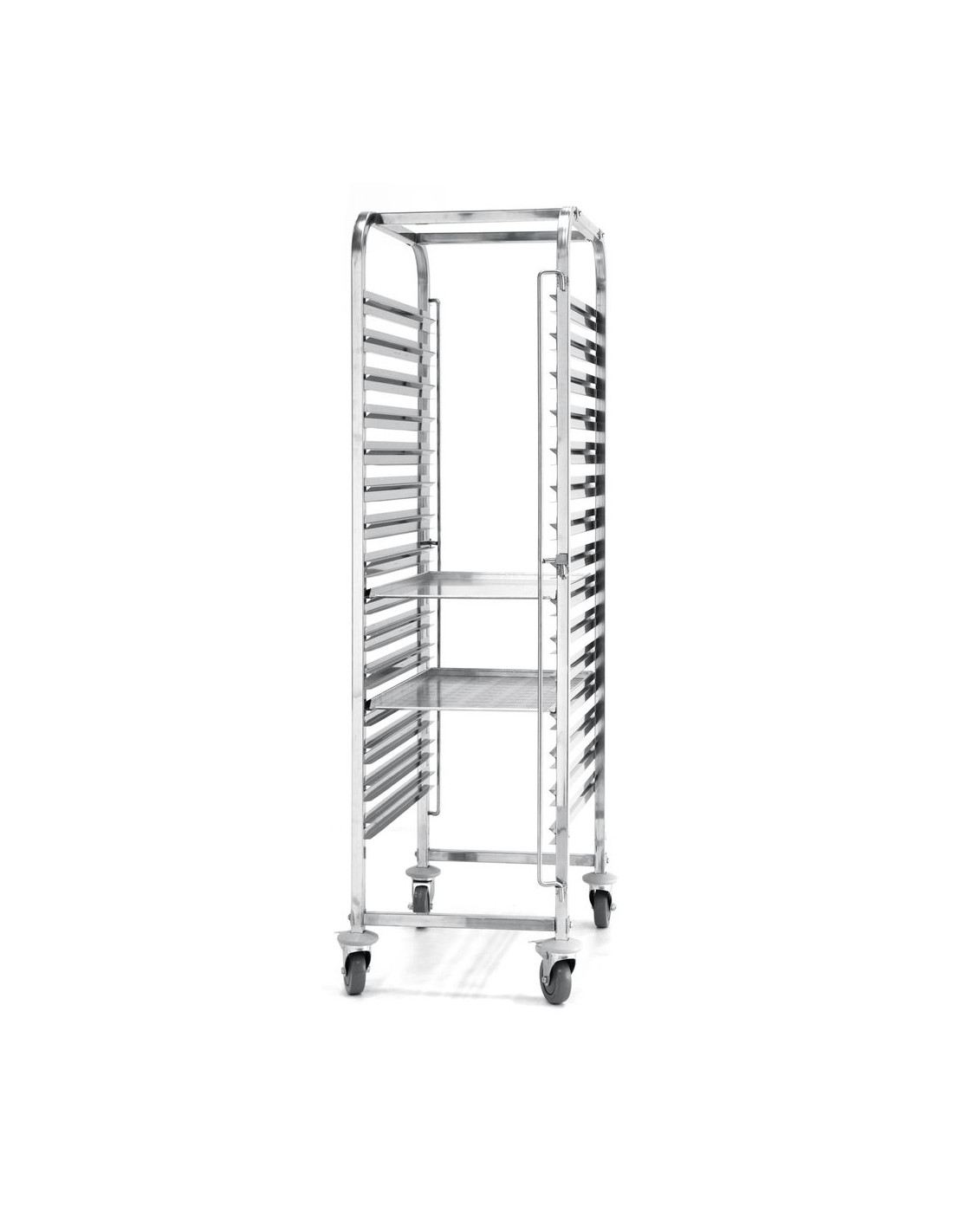 600x400 mm 15 lager - 80 mm mellanrum. Låsbara lådor på båda sidor. Utrustad med fyra hjul varav två har broms. Tillåten belastning på vagnen 150 kg vid jämnt fördelad vikt. Leverans i platt paket.