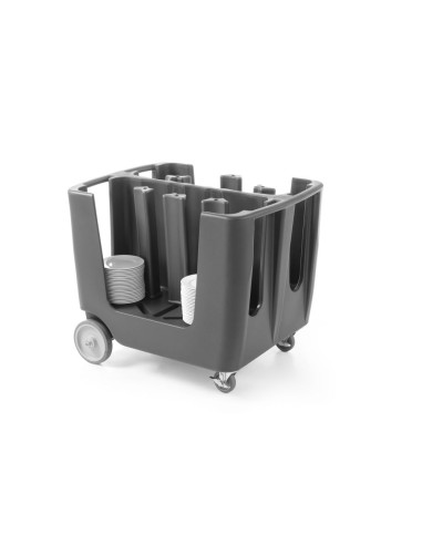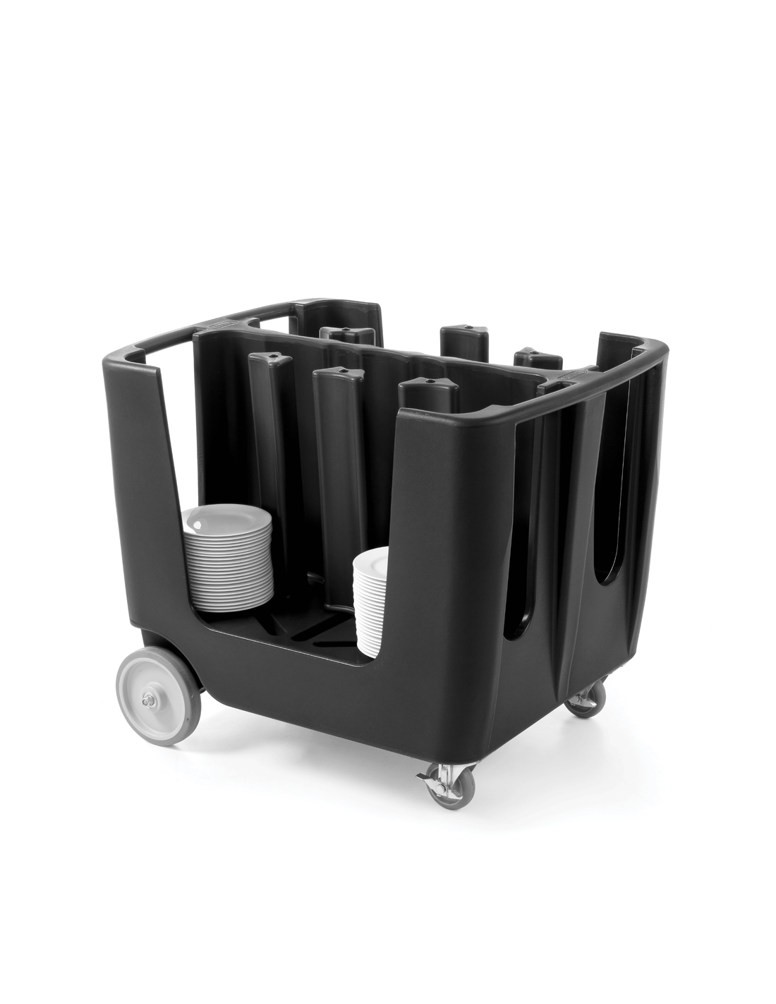 Garanterar säker transport av porslin. Mobila polyetenskydd gör det möjligt att lasta tallrikar i olika storlekar. Extremt robust design av polyeten skyddar porslinet från att flisas eller gå sönder. Antal tallriksstaplar: 6. Antal tallrikar per stapel: 50. Hjul som tål ojämnheter i underlaget, lämnar inga märken även vid full belastning. Två länkhjul med bromsar Ø 10 mm, stora hjul Ø 20 mm. Stöt- och slagtåliga. Vinylöverdrag för att uppfylla strikta hygienstandarder ingår. Tallriksdiameter från Ø 115 till Ø 330 mm.